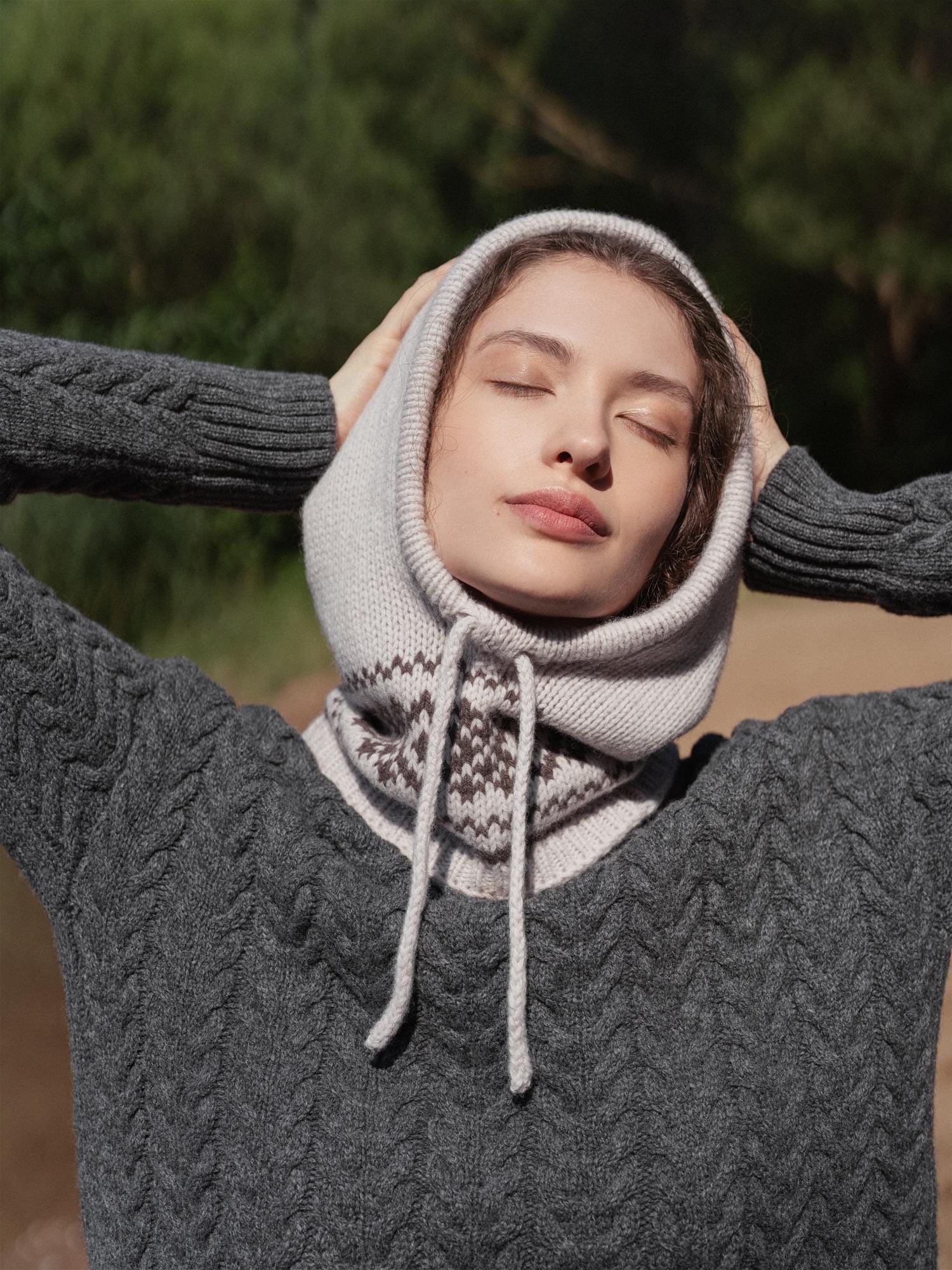 Balaclava Hooded Cowl, Boho Knitted Hood, Woolen Hood in Scandinavi...