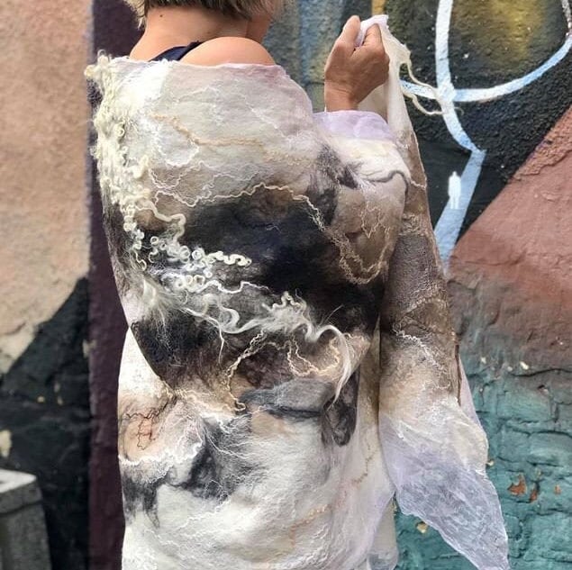 Bohemian shawl, Nuno felted scarf. Warmth for mom, Large wool scarf...