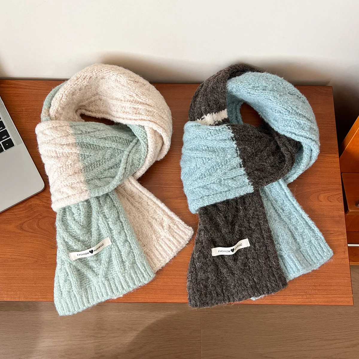 2025 Wool Blend Color-Contrasting Stylish Knitted Student Warmth Wr...