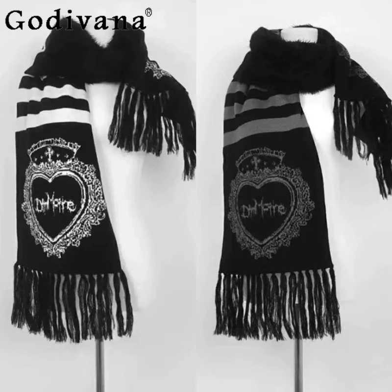 Original Japanese Subculture Gothic Dark Black Scarf Autumn Winter Girls Sweet Cool Print Warm Scarf...