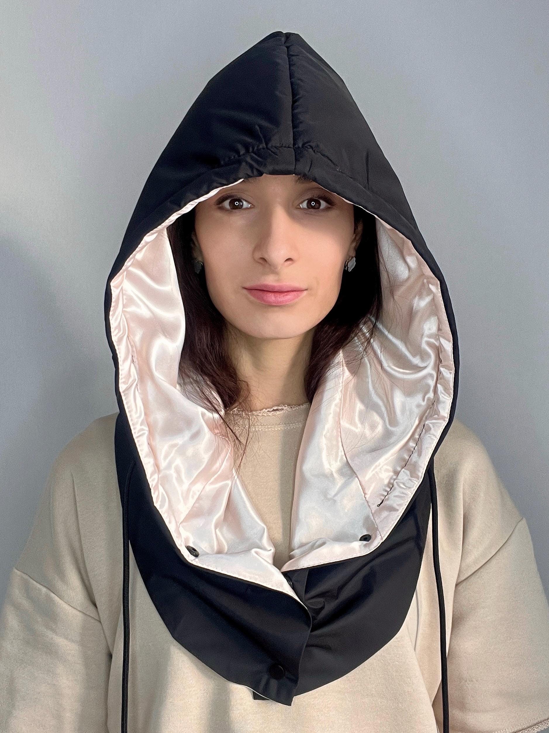 Waterproof hooded scarf with silk lining, Womens hood for curly hair, Gift for her Stay stylish and ...