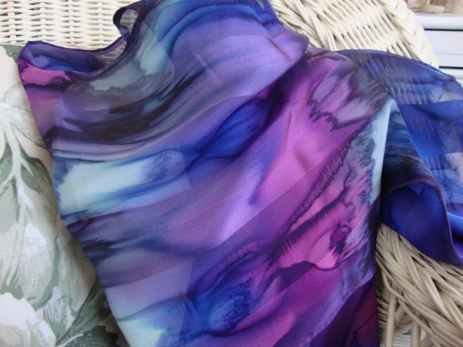 "This gorgeous multi colored streaked scarf is hand painted and is 100% silk. Hand hemmed as we...