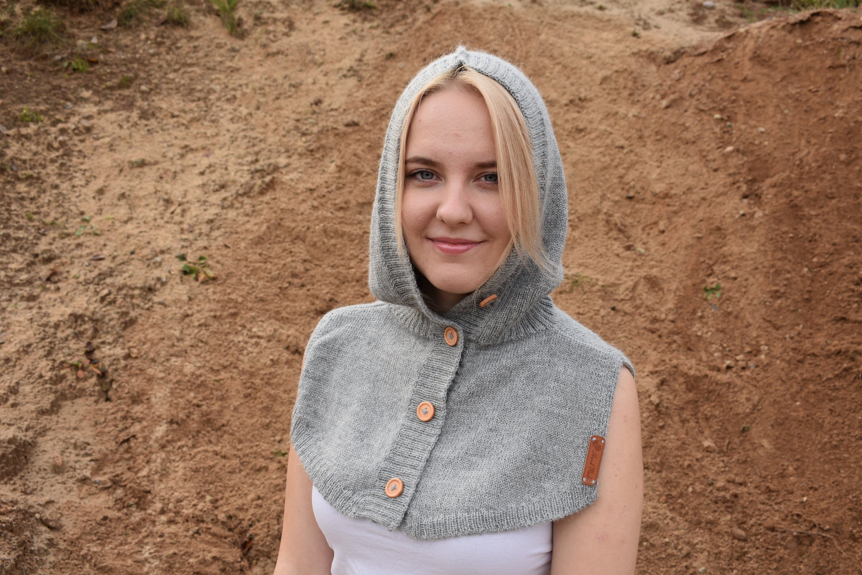 Knitted hooded hat for women Alpaca neck warmer Warm wool hooded sc...