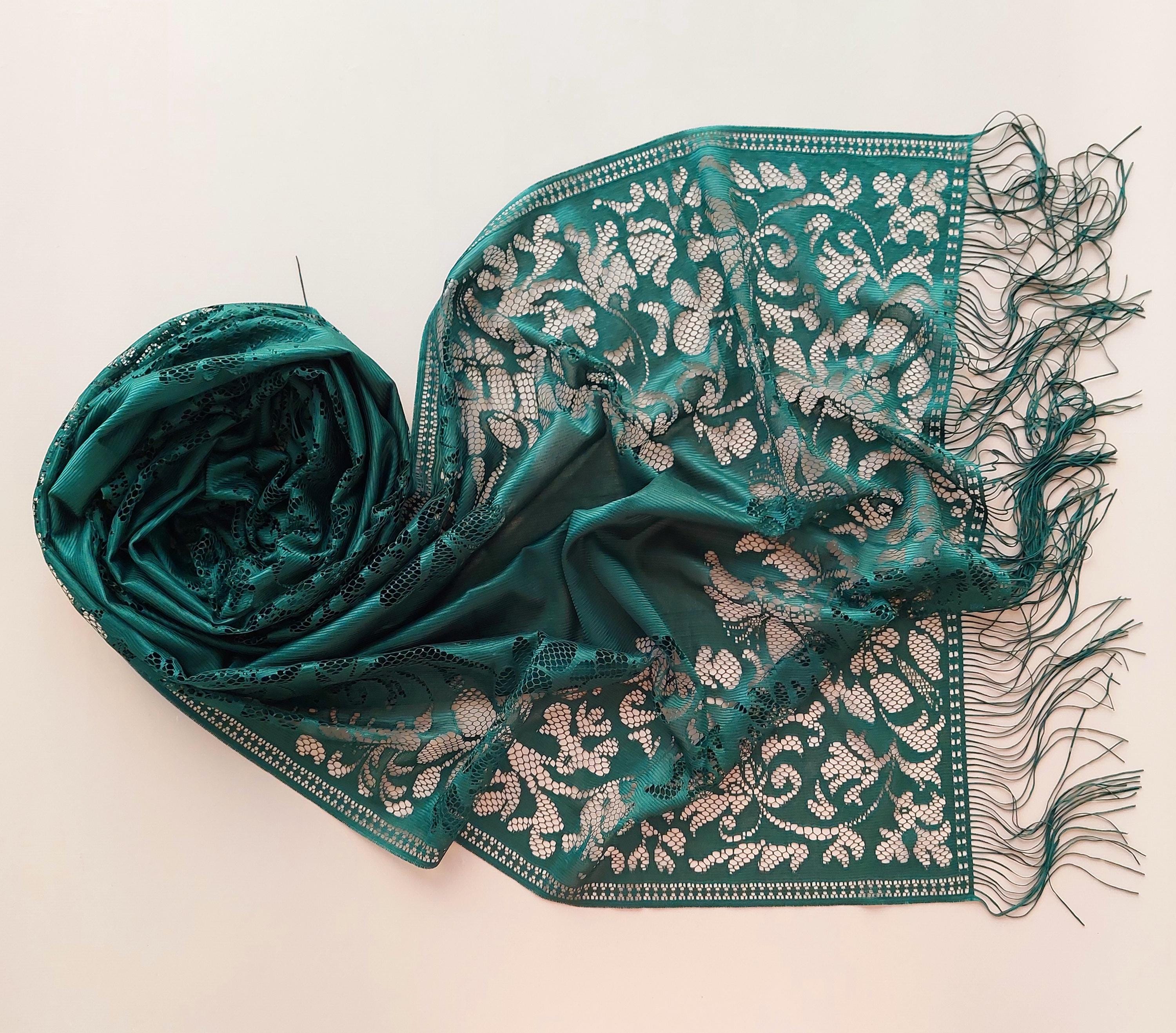 Green Tulle Scarf, Wedding Shawl, Lace Scarf, Cowl, Bridesmaid gift Bridal Scarf, Lace Mantilla,Chur...
