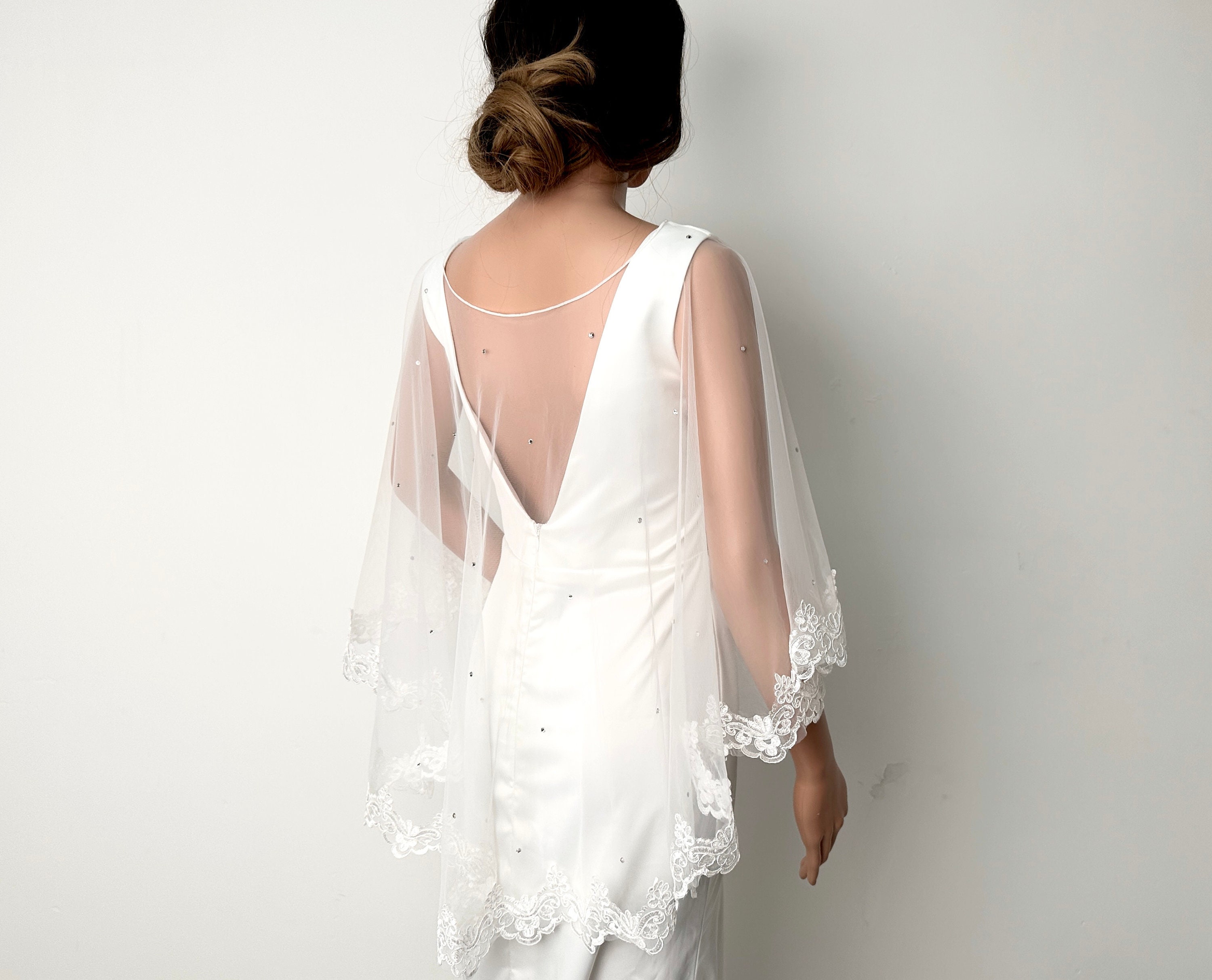 Lace veil pullover |bride shrugs|Bridal lace Shawl|Bridal Cover Up|...