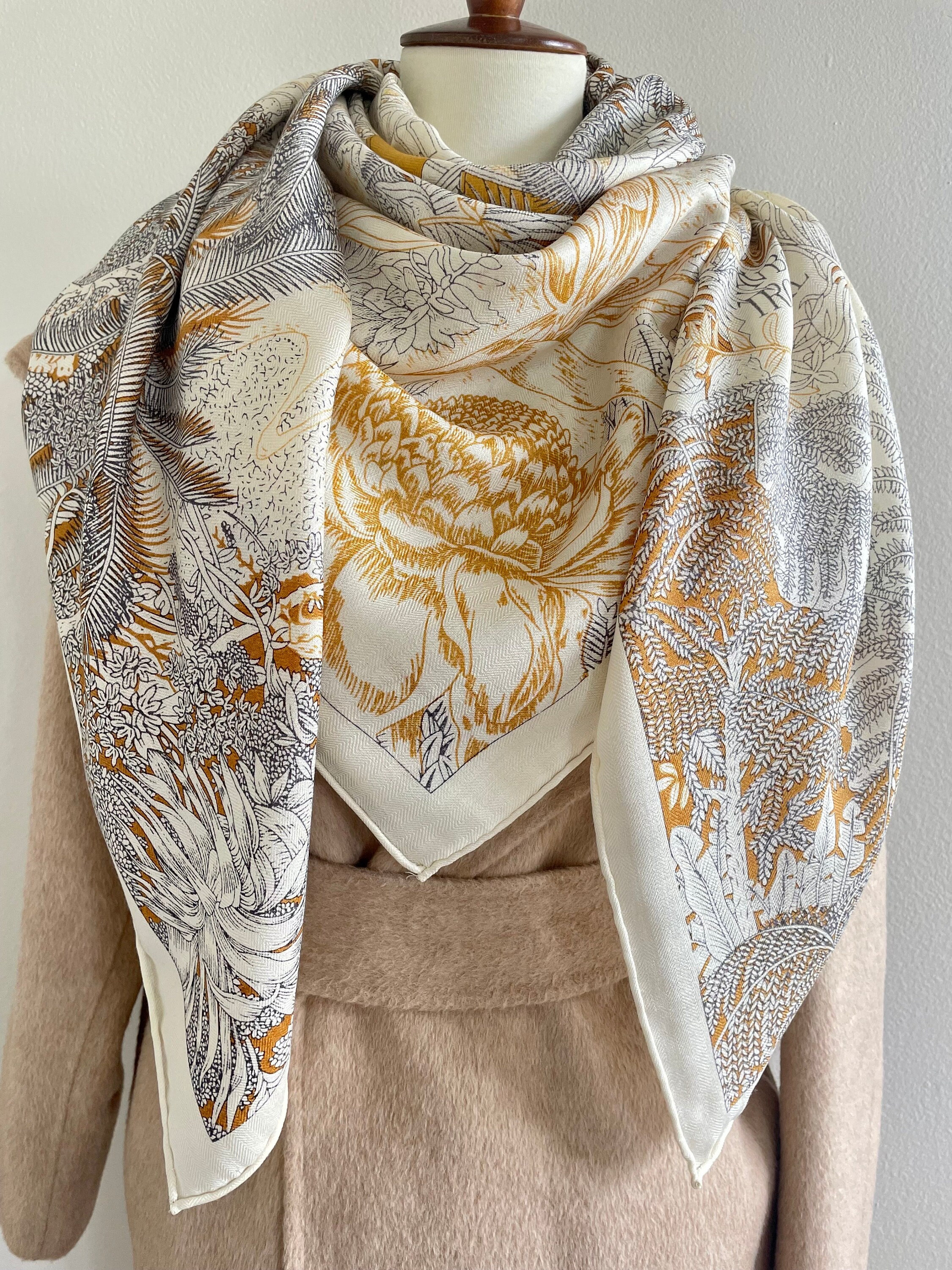 "Elegant Tropical Foliage Square Scarf /Shawl /Wrap Material: 70% wool, 30% silk Size: 140 cm x...