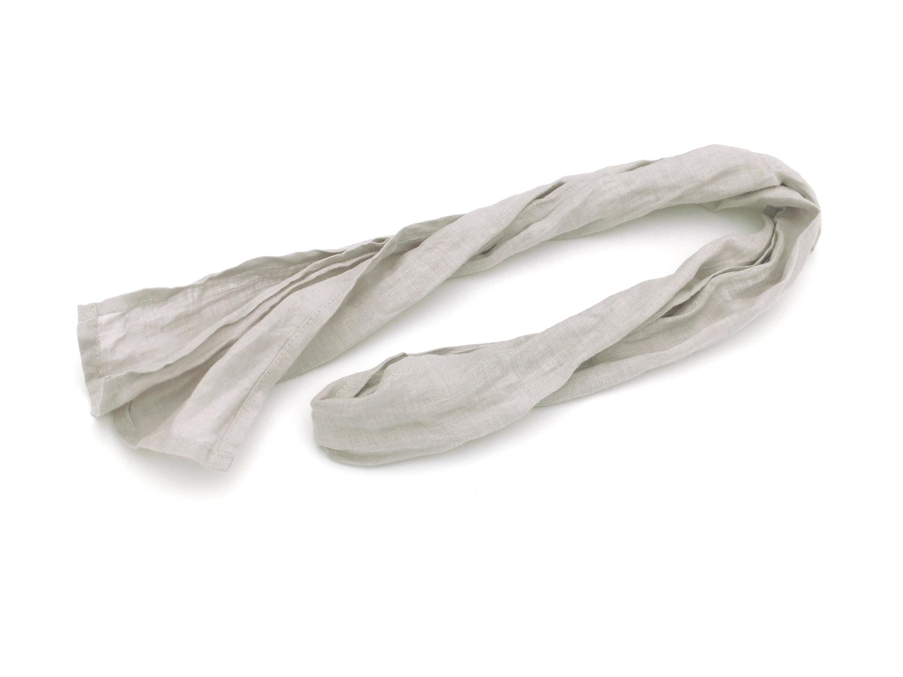 "Crafted from quality lightweight 100% linen fabric, this tiny tie-like light grey scarf is a v...