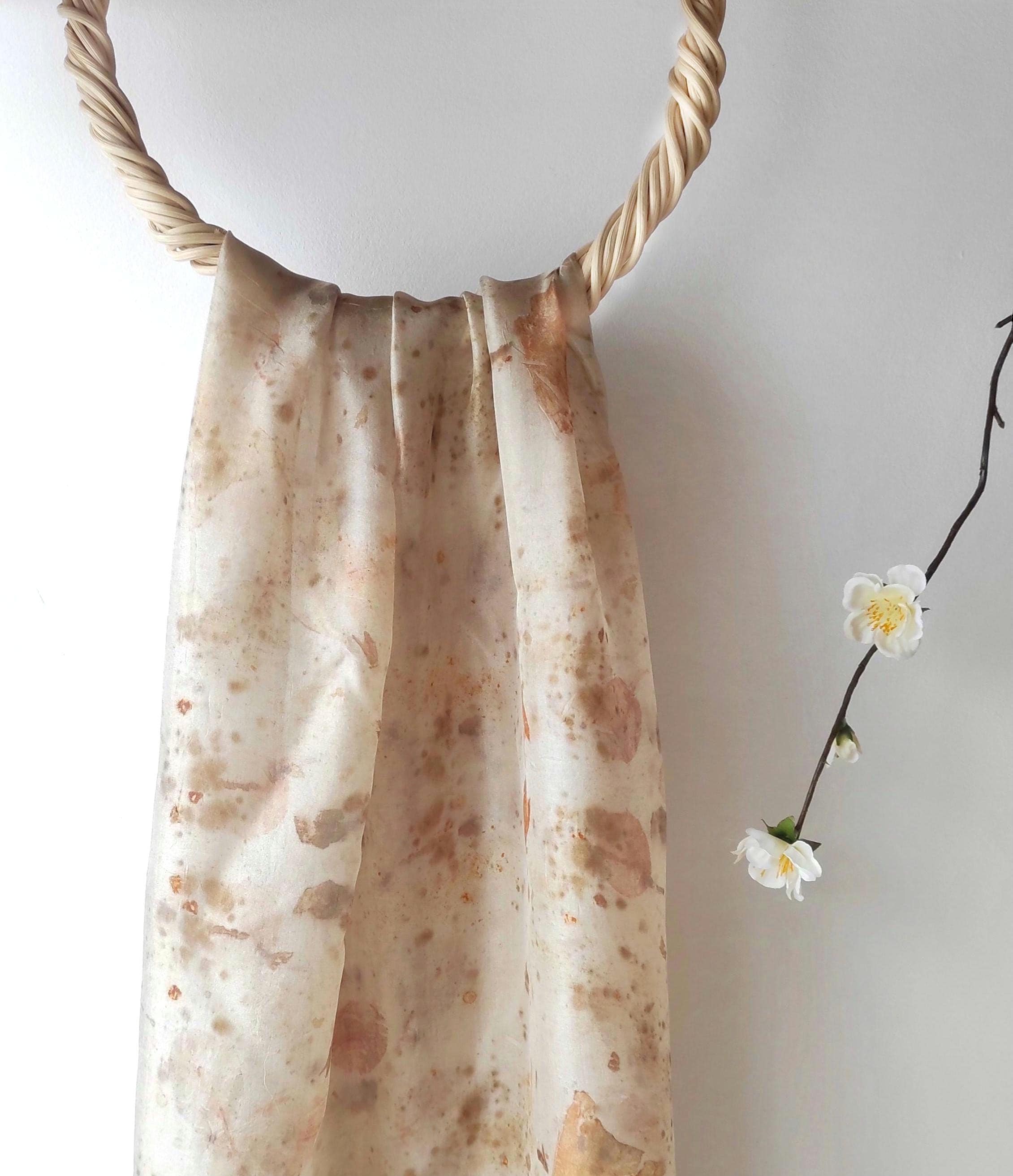 "Stunning natural silk scarf in brown color to wear in your hair or neck, its ecological print ...