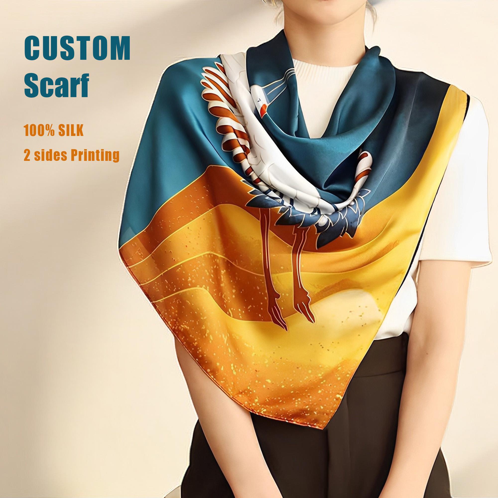 Custom Twill Silk Scarf | Personalized Pure Silk Scarf | 100% Mulbe...