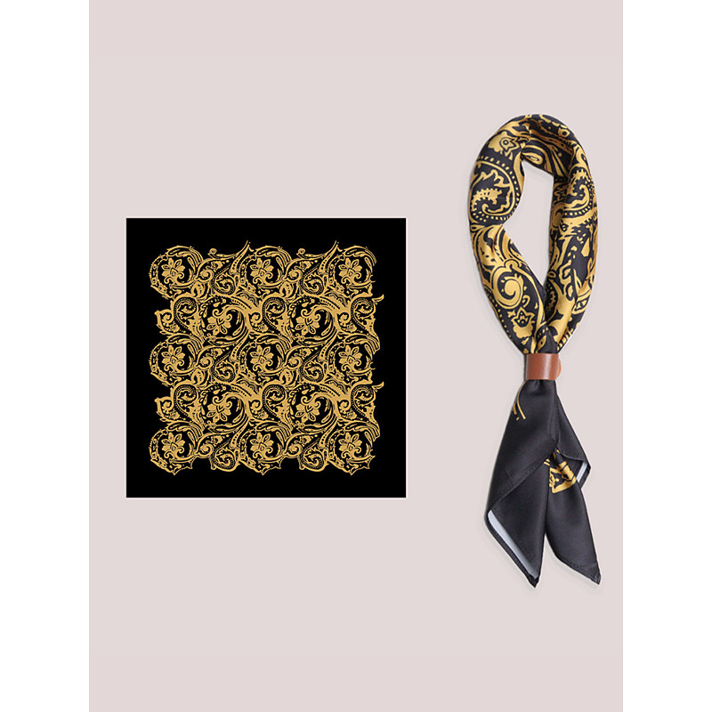 Men's Paisley Print Square Neck Scarf with Leather Buckle, Vintage ...