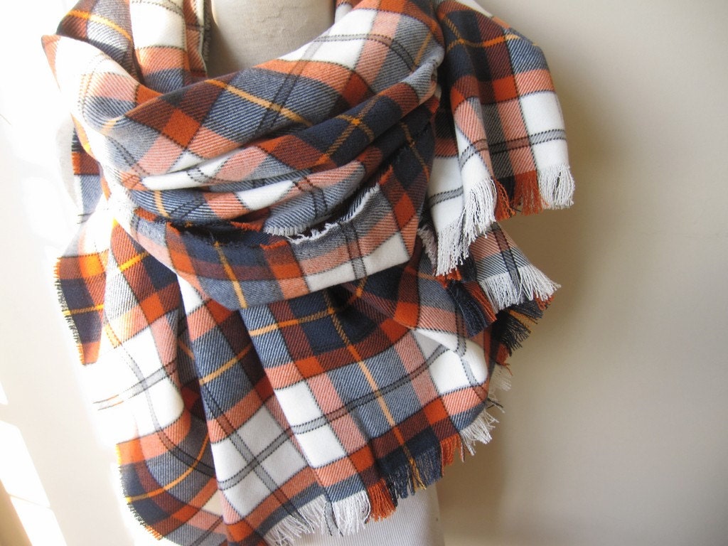 "scarves2012 1 pc ORANGE navy blue white Tartan plaid blanket shawl scarf, This scarf made out ...