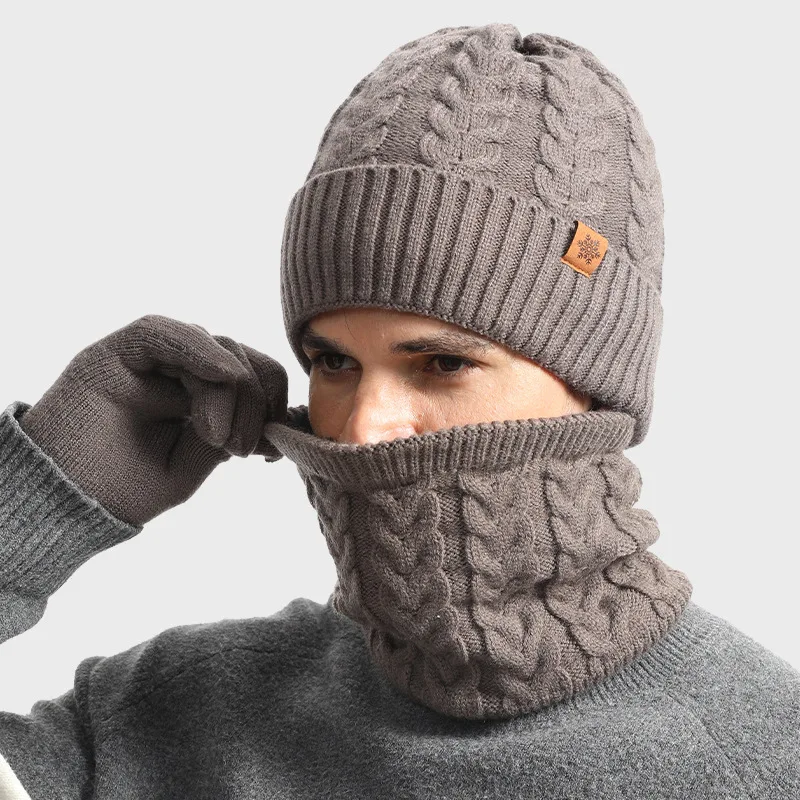 Men's Winter Jacquard Knitted Hat Set Fleece-Lined Cold-Proof Wool ...