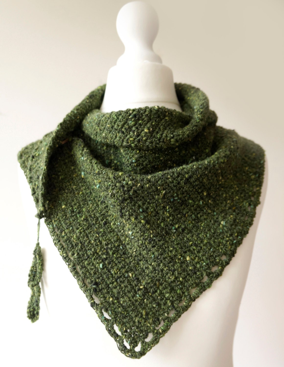 Crochet Shawl, Mossy Green, Scarf Pattern. Asymmetric Shawl, Fall C...