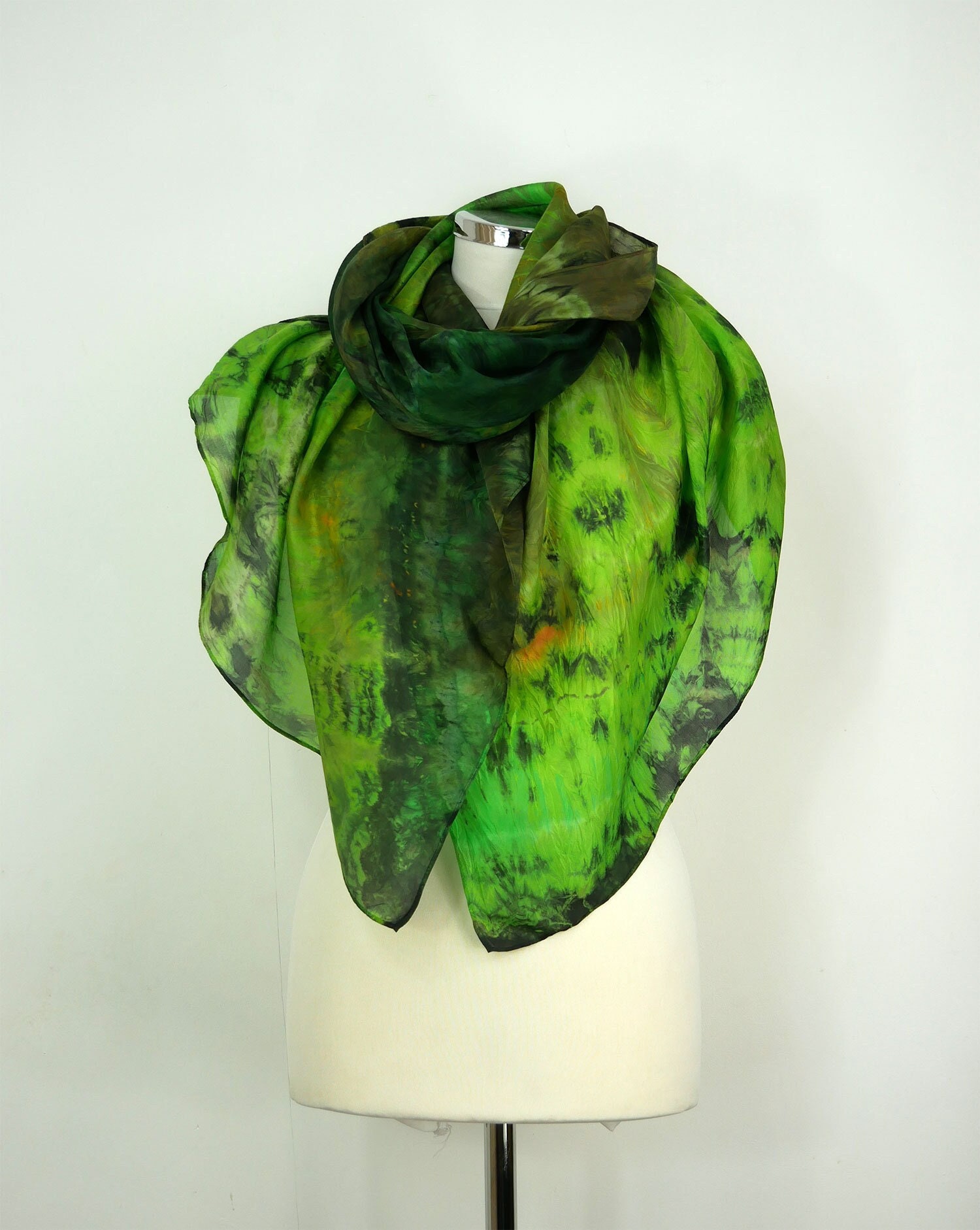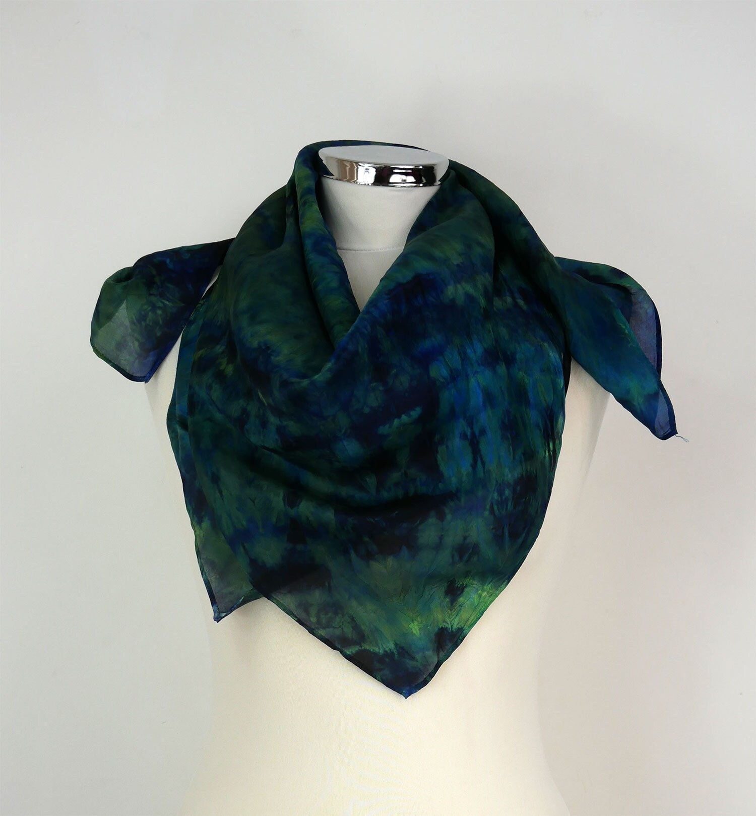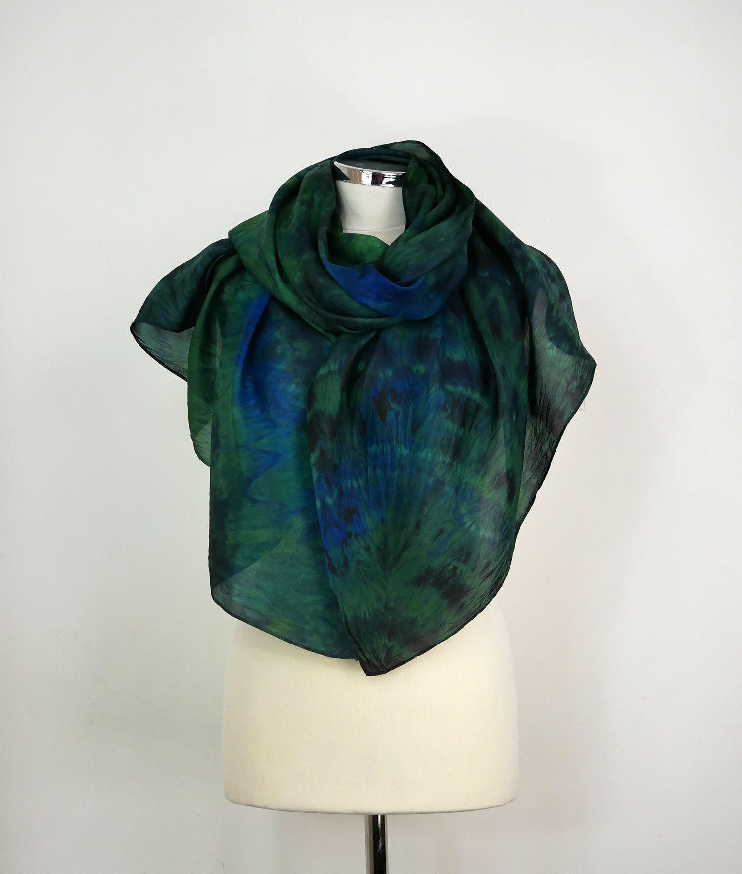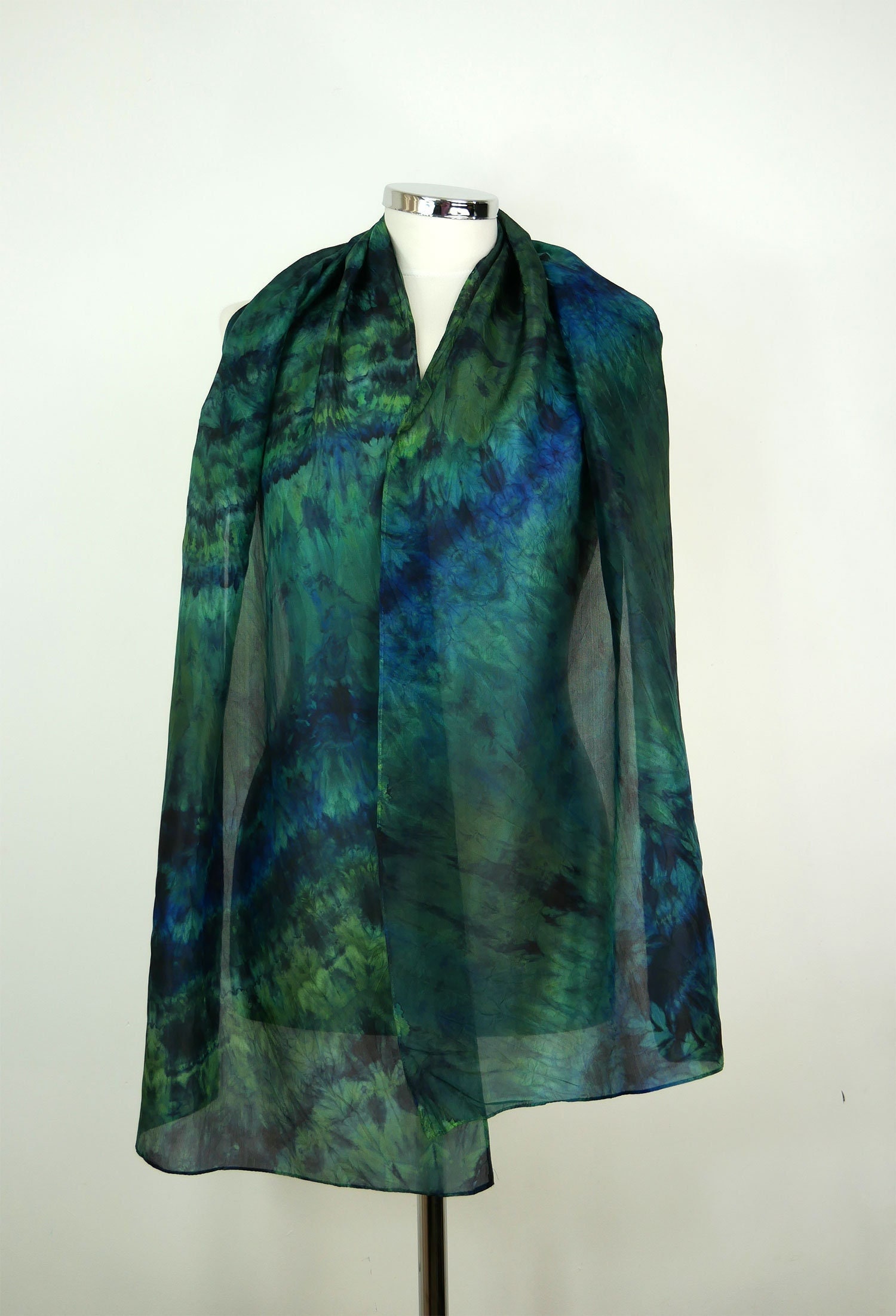 Green blue silk scarf Jungle Large silk scarf women Hand dyed silk ...