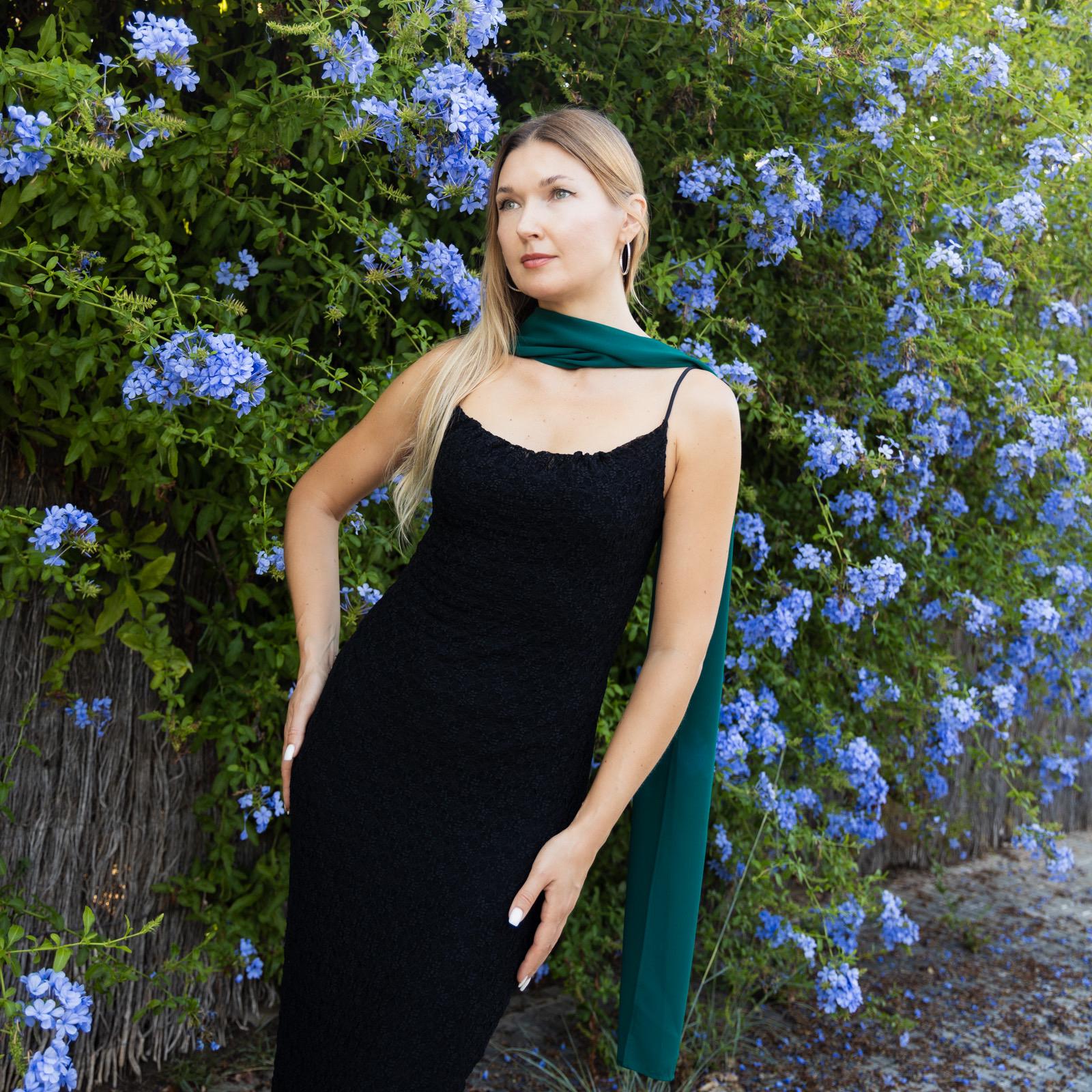 Simple and elegant sheer scarf. Made of soft chiffon. Color: dark green (other colors are available)...
