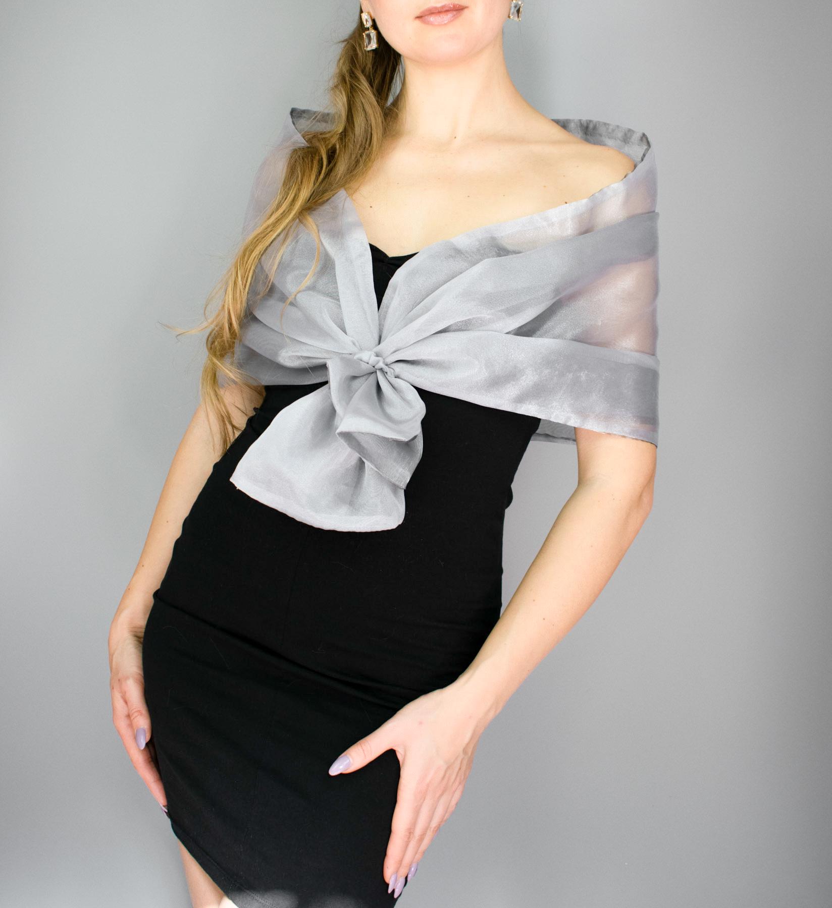 Light grey organza wrap silver pull through wrap shawl light grey b...