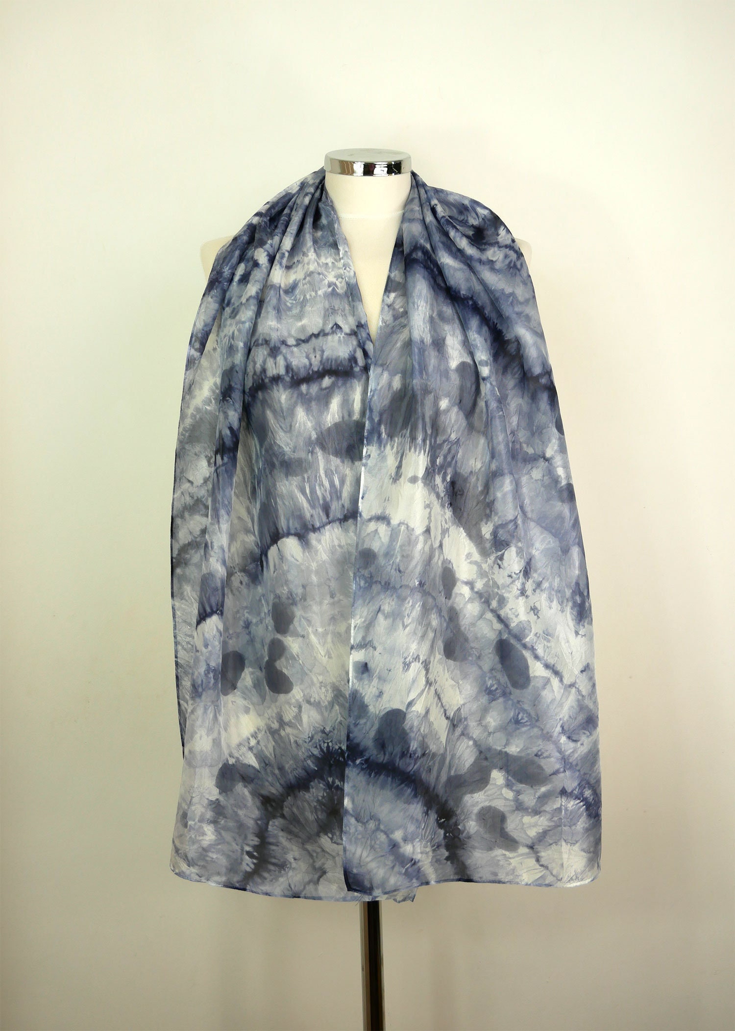 Grey silk scarf women Silver Fox Grey silk scarf uk Hand dyed scarf...