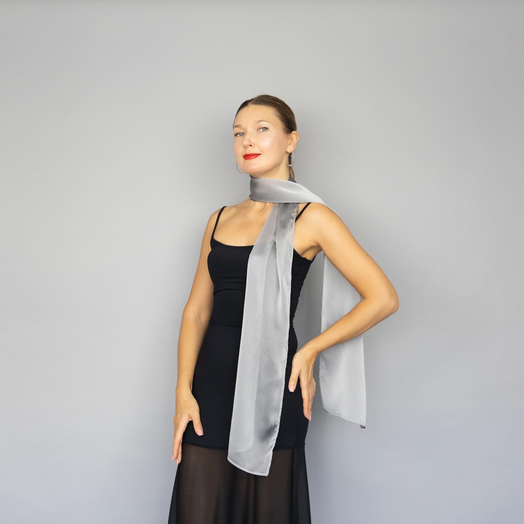 Silver grey scarf long chiffon scarf neck scarf flowy sheer scarf s...