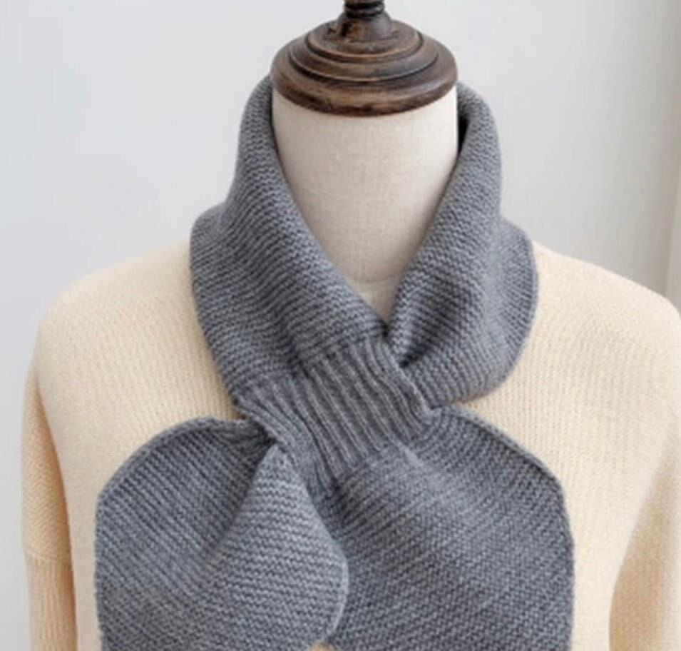Grey Knitted Scarf Necktie Grey Knitwear Hand Knitted Scarf Short Scarf Neck Scarf classic Knitwear ...