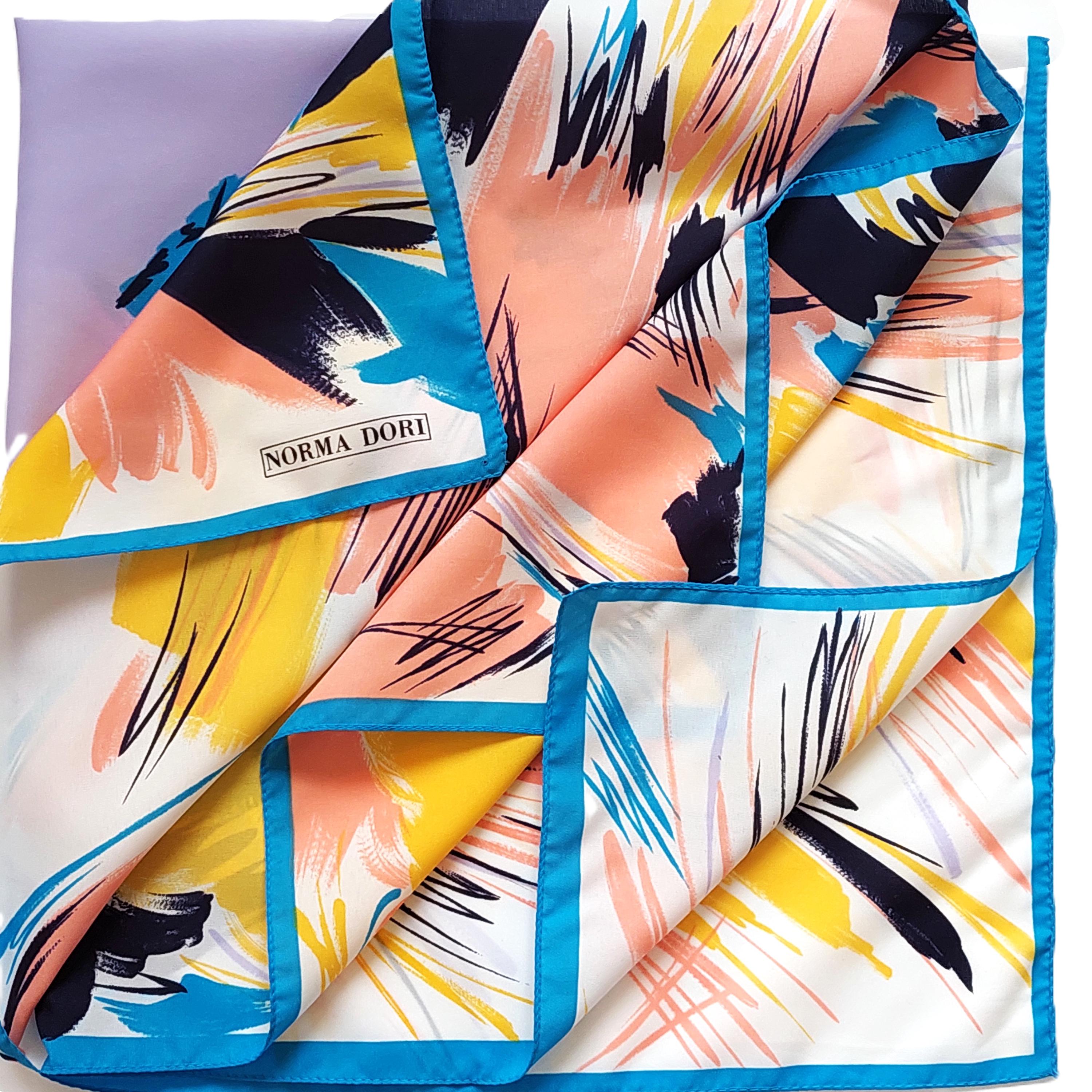 Norma Dori Italian Scarf Yellow Pink Lilac Blue Abstract Print 30''...