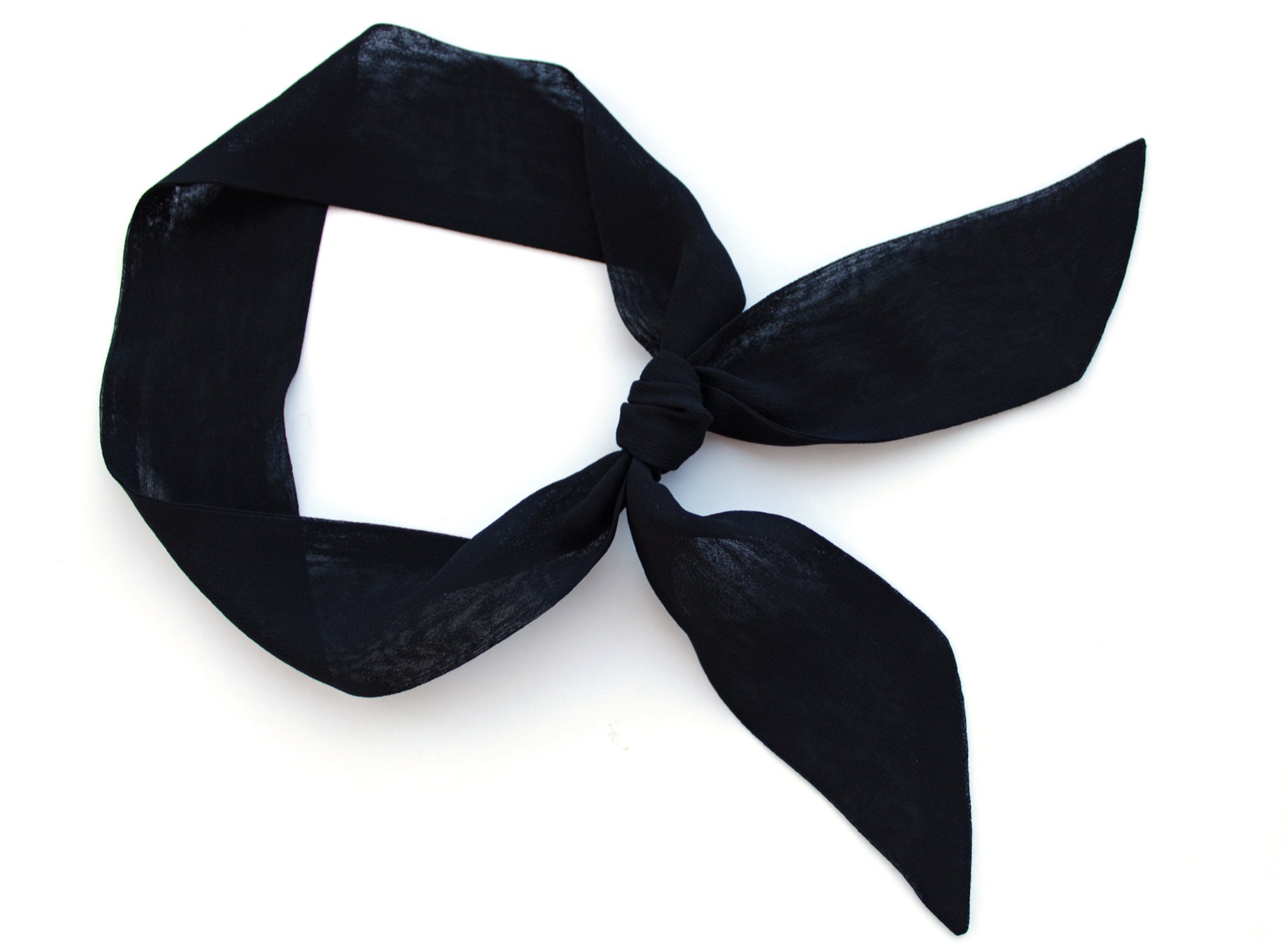 Elegant Black Chiffon Short Hair Scarf - Stylish Skinny Accessory f...