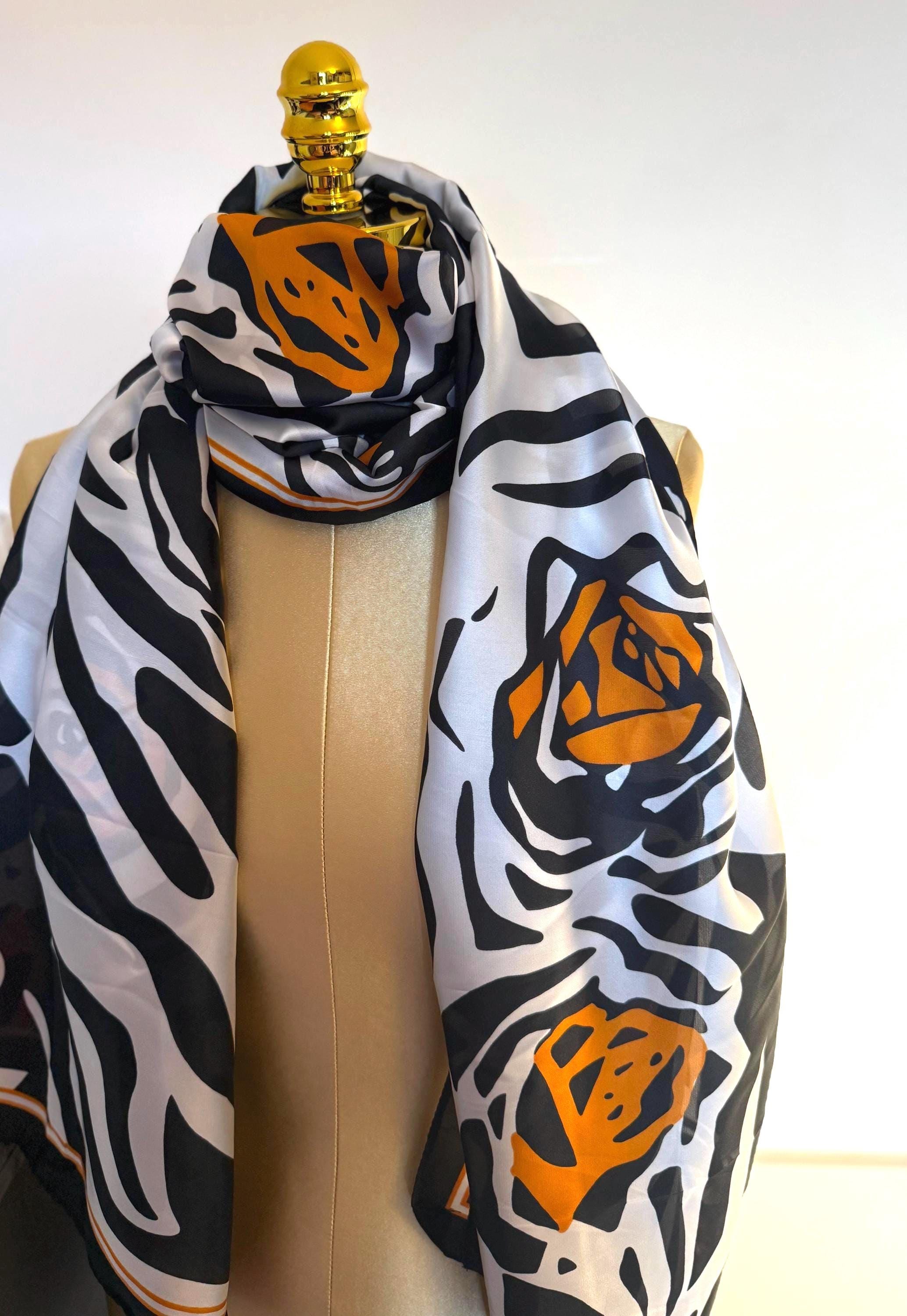 Zebra Print Silk Scarf, Orange Floral Headscarf for Women, Elegant ...