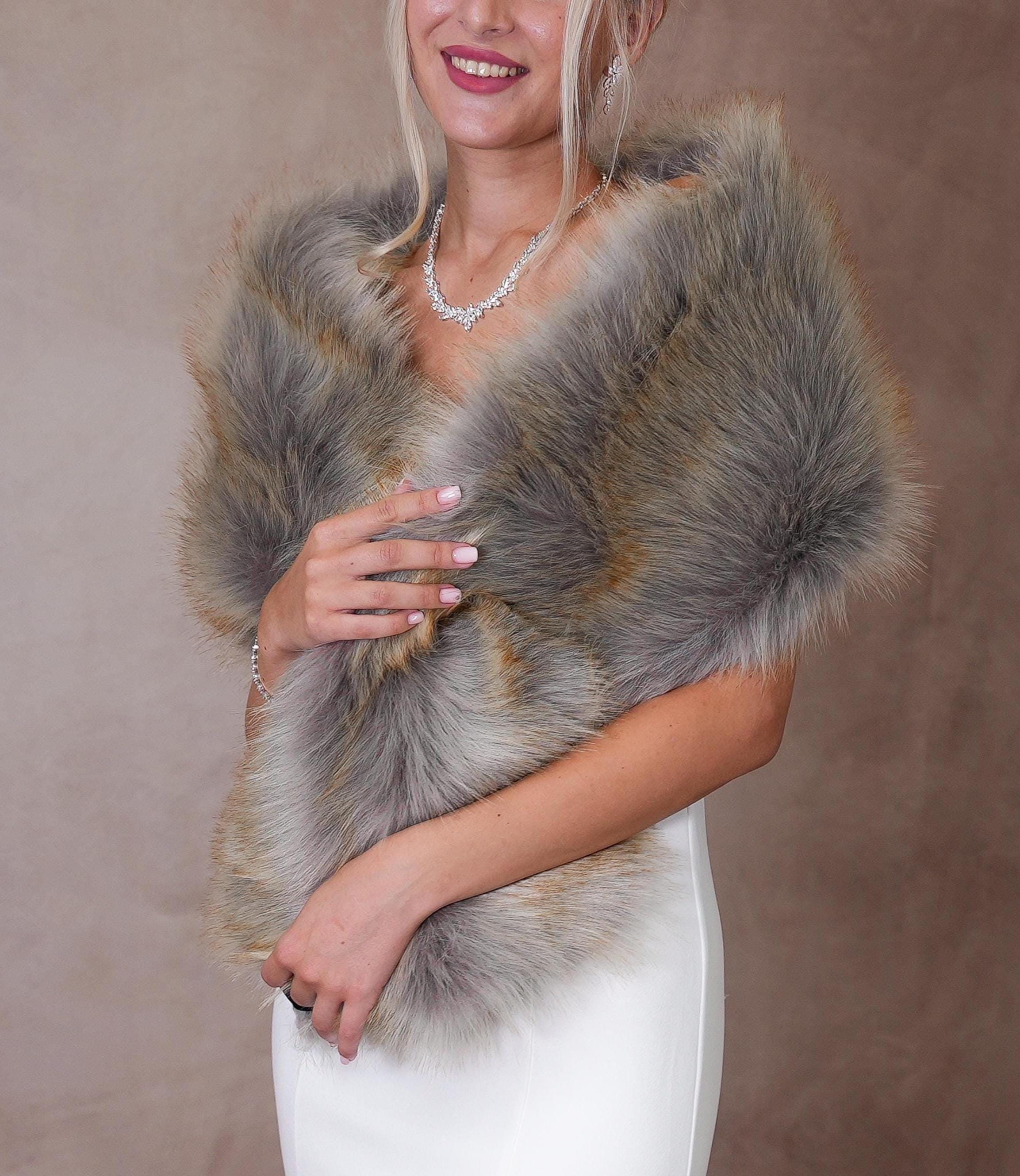 Fur Shawl Plus Size Wedding Scarf Long Wedding Fur Bridal Wrap Brid...