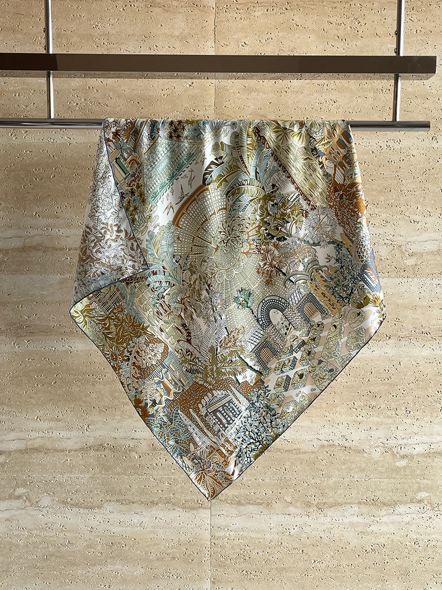 Twill Silk Scarf 90 Summer Square Shawls Hems Rolled Bandanas Top A...