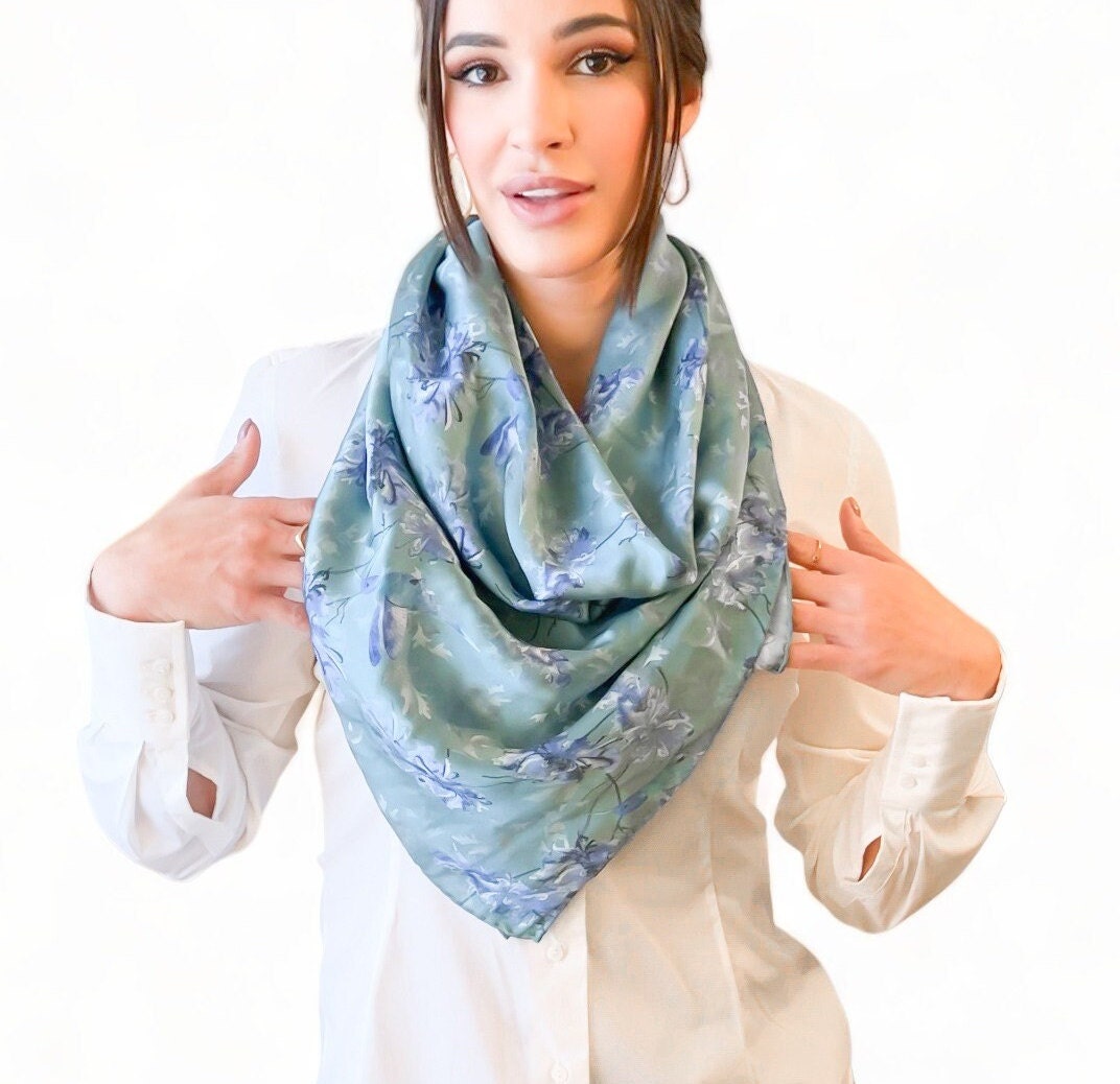 100% Silk Scarf, Neck Scarf, Square silk scarf, Scarf Women, Head S...