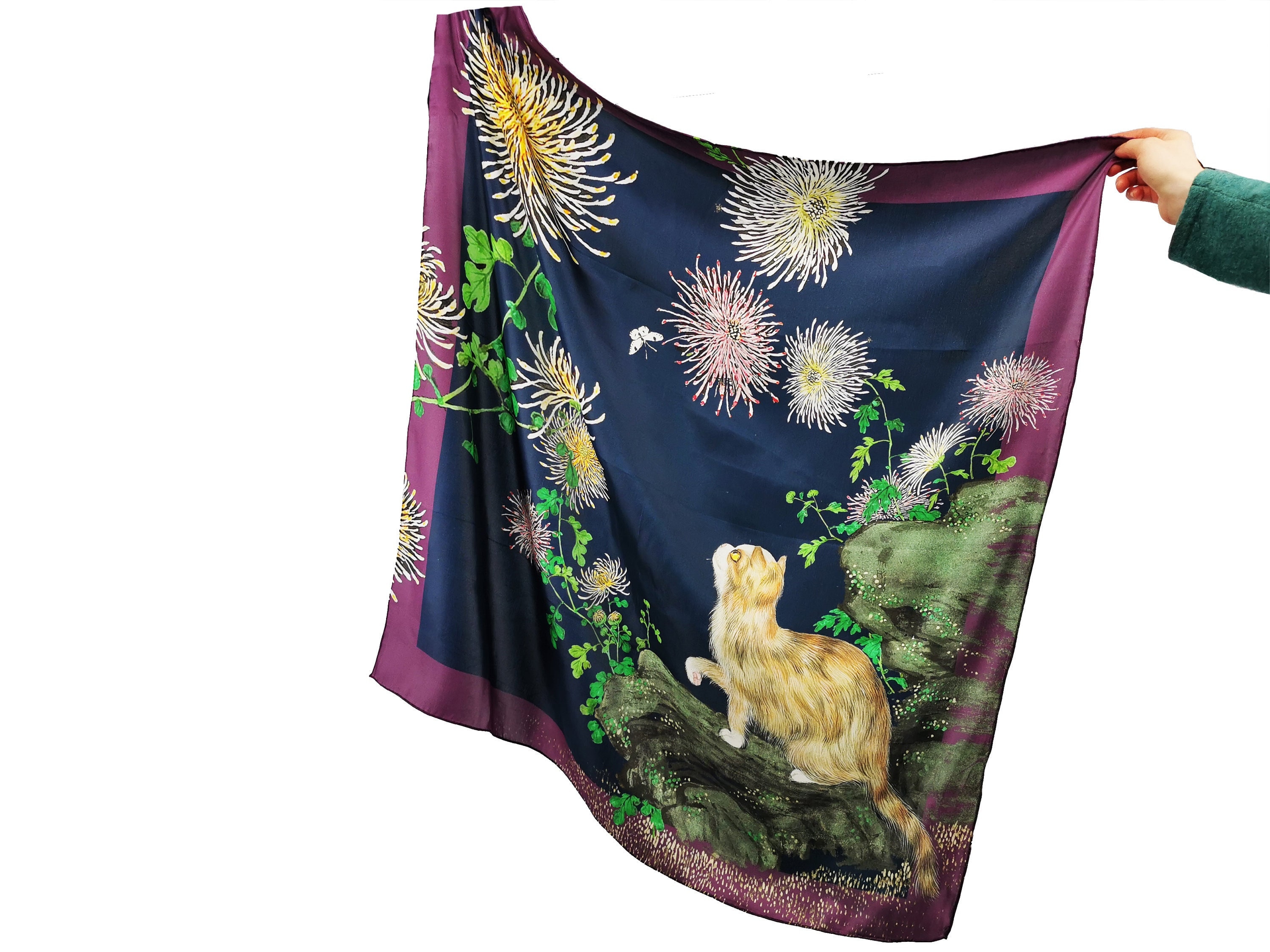"This unique silk scarf features an amazing artwork by Shen Zhenlin, who served the Qing court ...