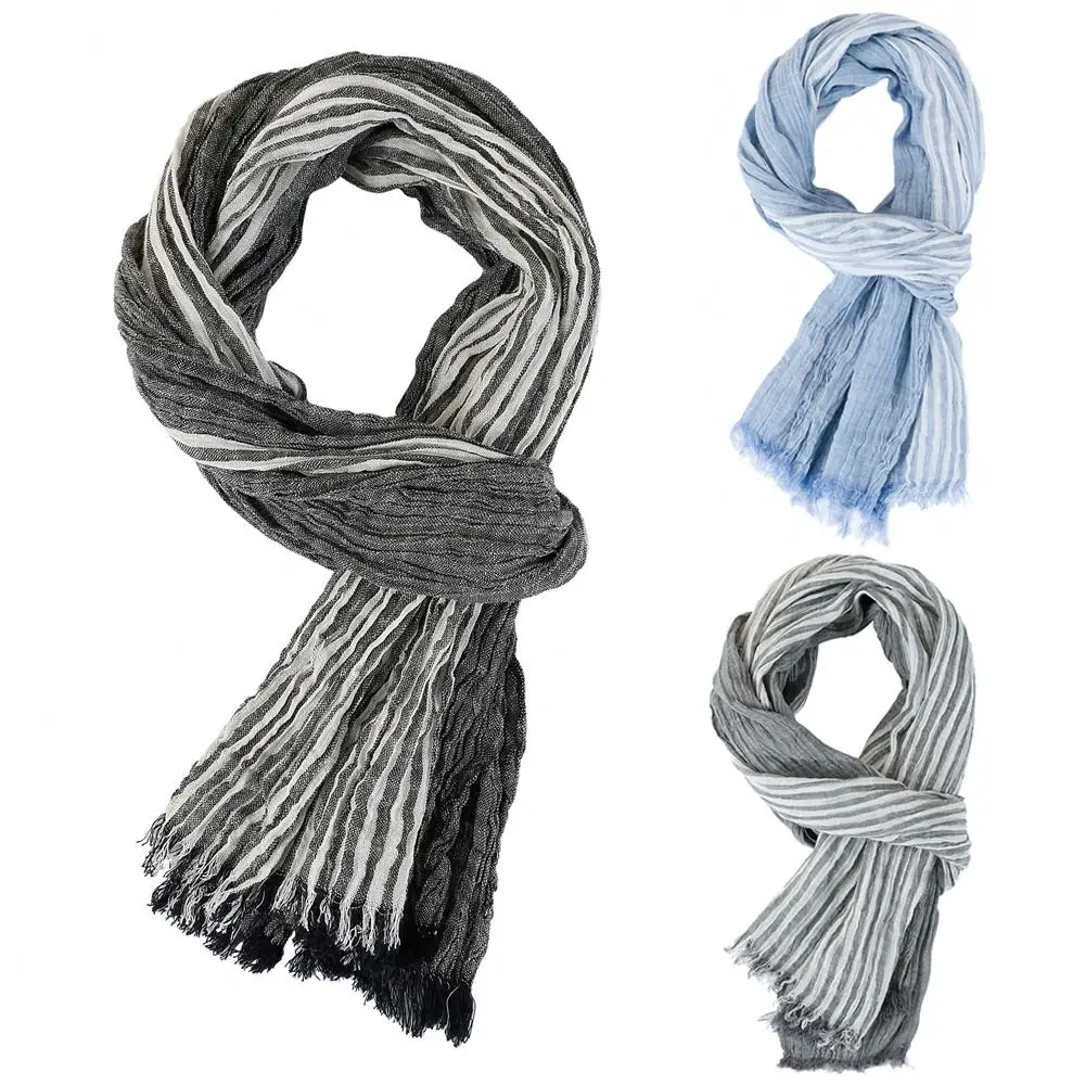 Fashion Men Scarf Striped Cotton Linen Men Scarves Autumn Winter Wa...