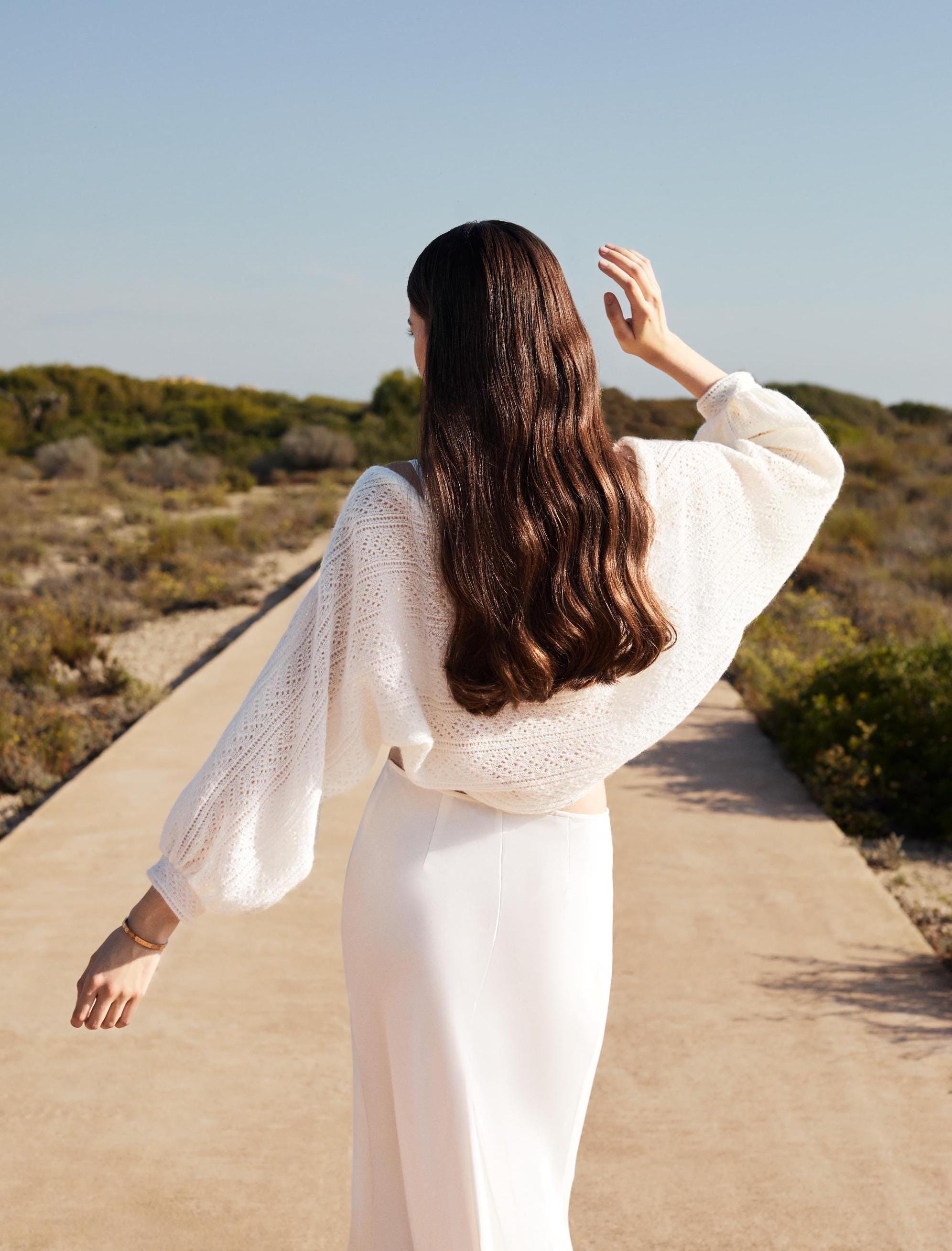 White wedding shawl for boho bridal, Cape wedding dress topper shee...