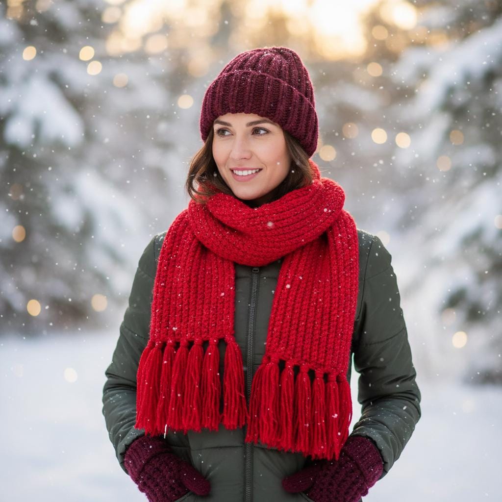 Crochet Pattern Set: Ribbed Beanie, Scarf & Fingerless Gloves -...