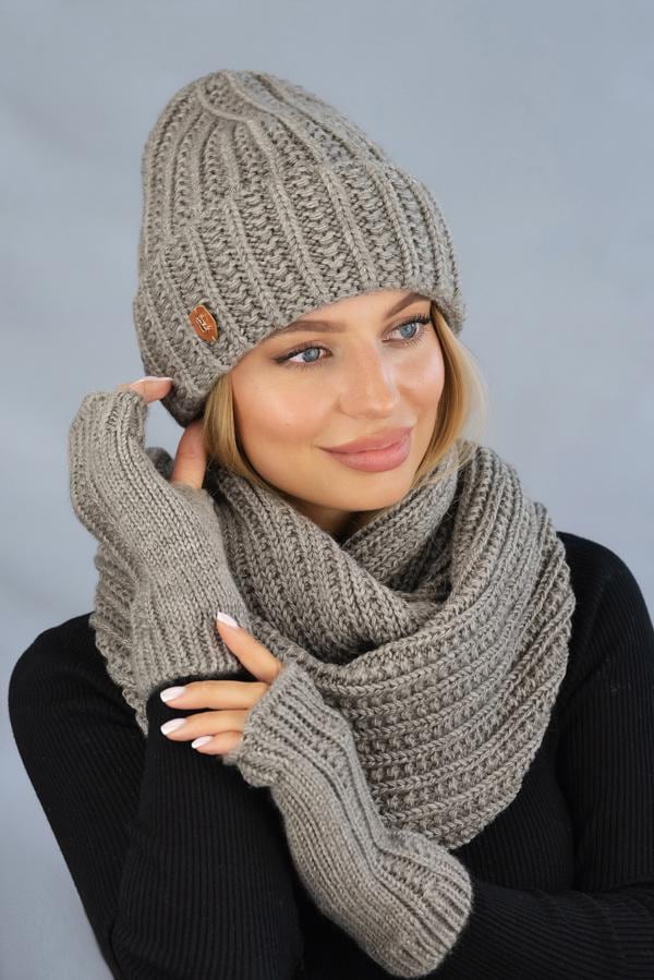 Knitted Winter Set: Blend Hat, Scarf & Gloves - Women's Cozy Se...