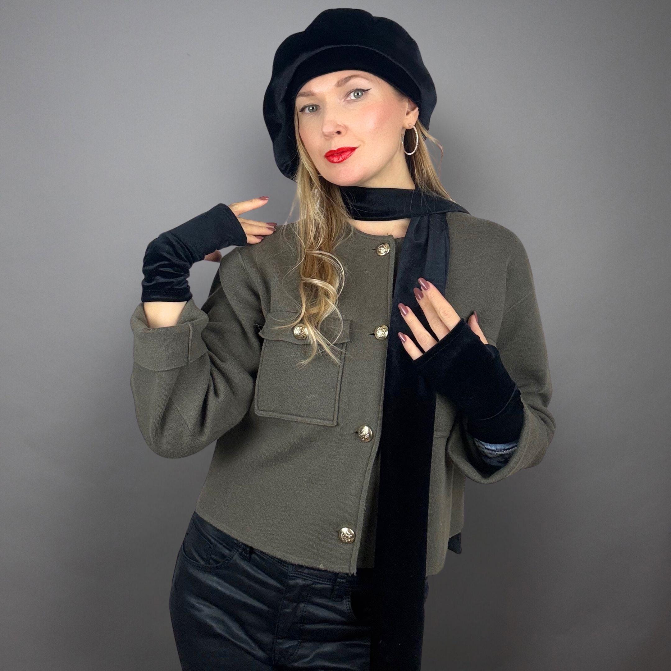 Velvet beret velvet scarf woman gift Winter velvet set velvet glove...