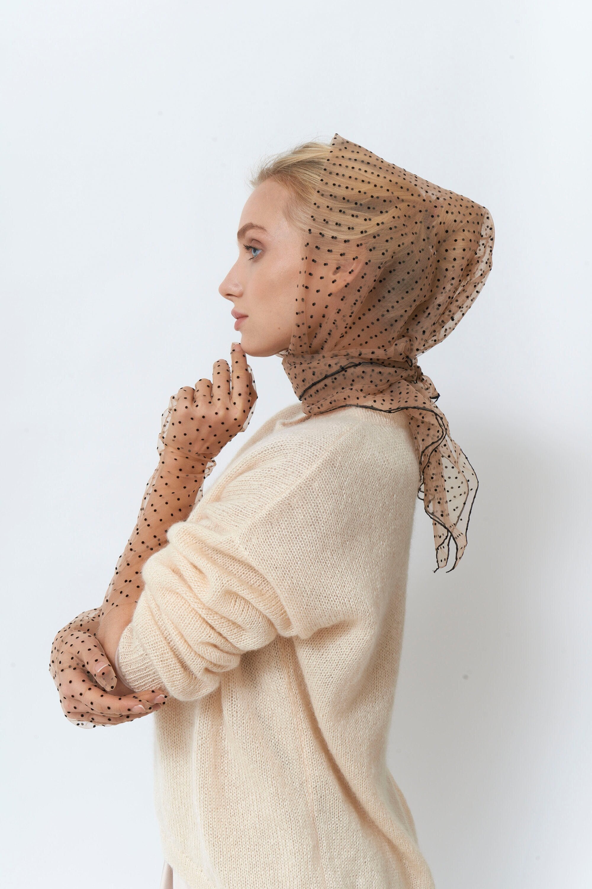 Tulle scarf black polka dots scarf sheer scarf black transparent sc...