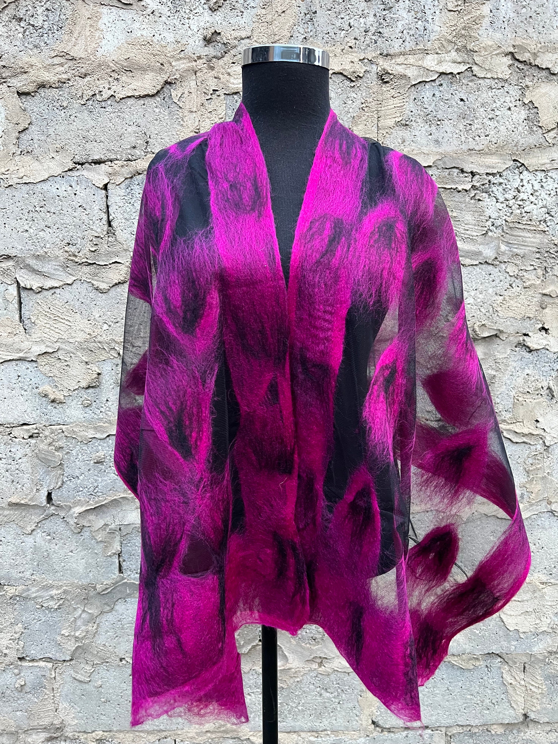 merino wool/felt scarf/nuno felt/Handmade felt scarf / silk scarf /...