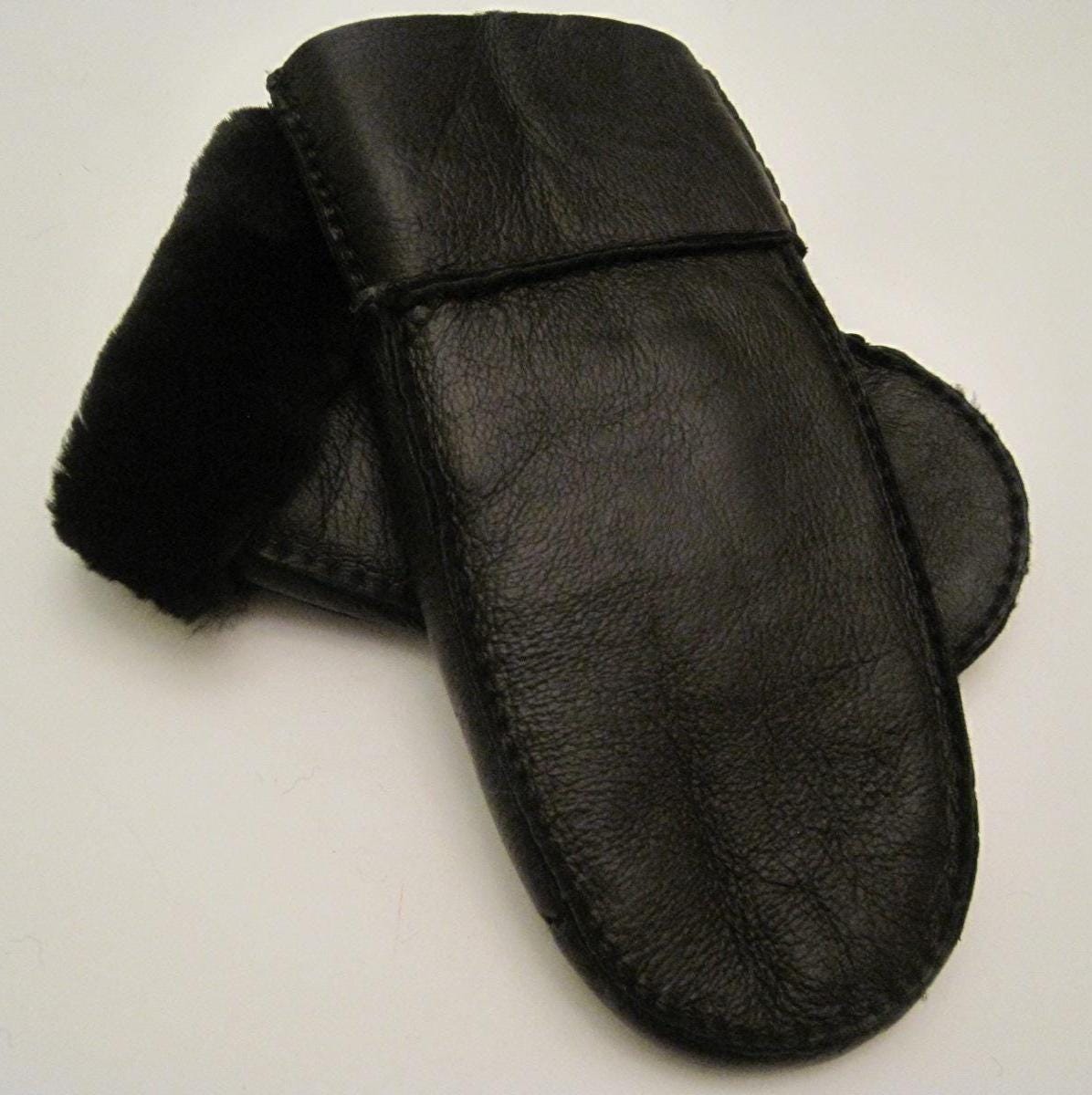 "-Large cuffs that can be folded back if desired- Winter Men black mittens quality and extremel...
