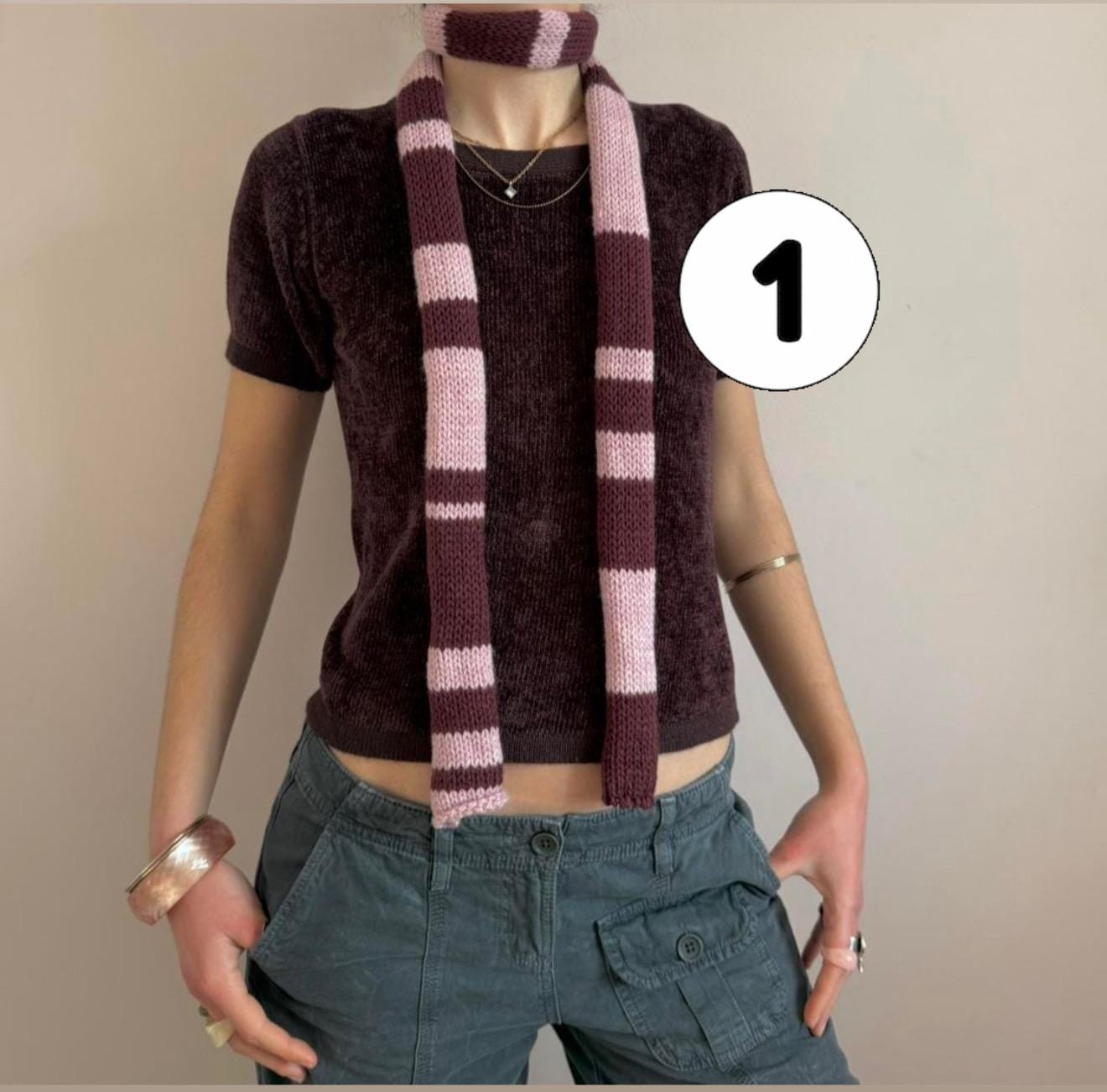 y2k multicoloured long skinny crochet scarf, retro long thin scarf,...
