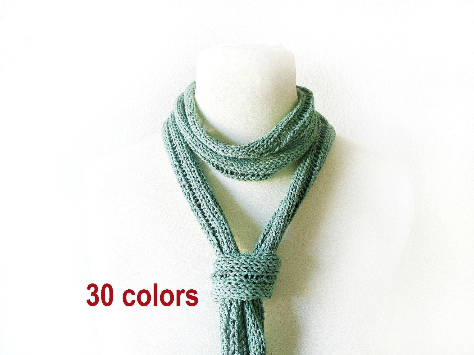 Cotton skinny scarf Knit thin long scarf Lightweight scarf Soft thi...