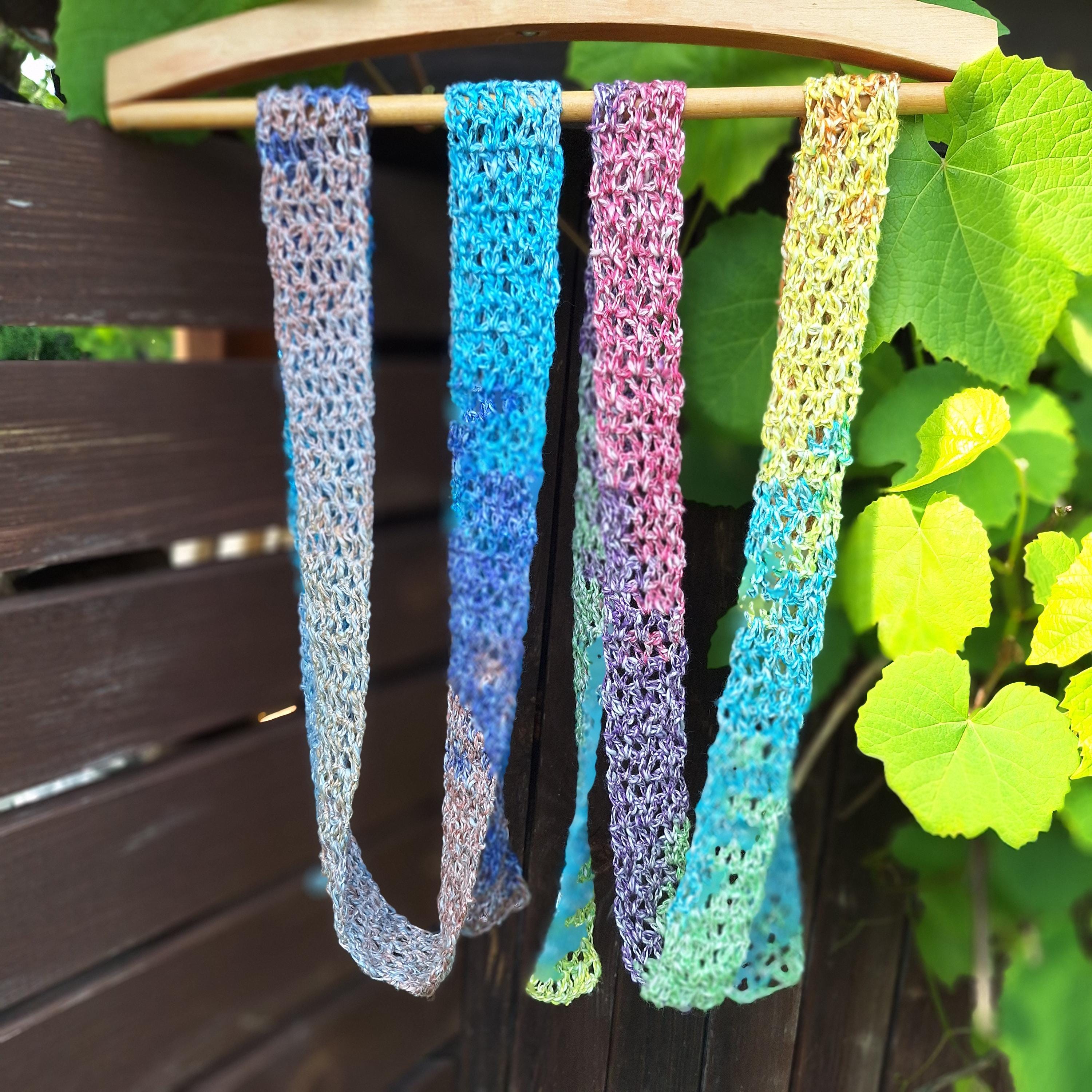 "Lightweight knitted cotton skinny scarf - the perfect accessory for warm days! This handmade s...