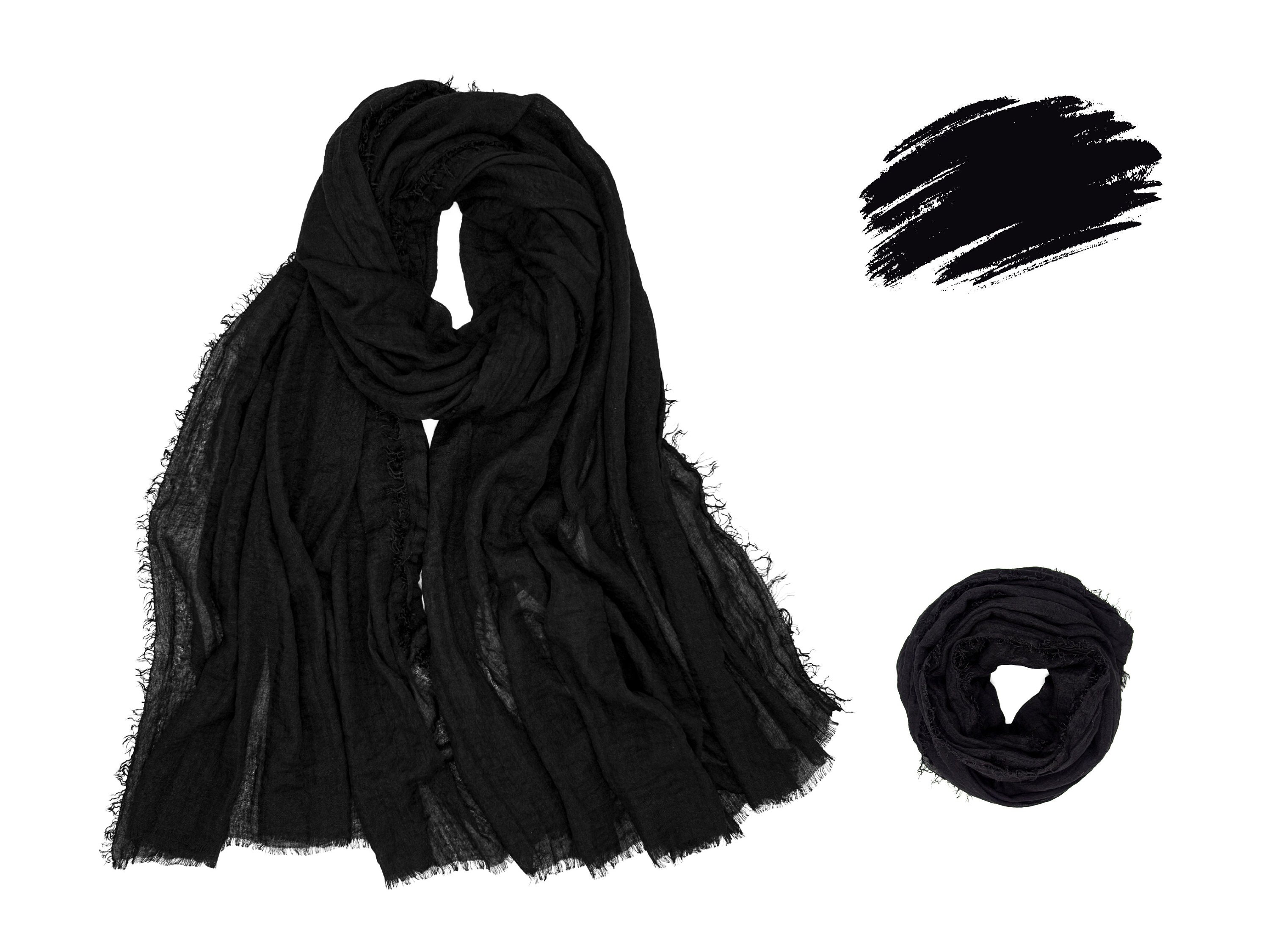"This scarf match with perfectly men's suit Its a breathable thin black cotton scarf Very soft ...