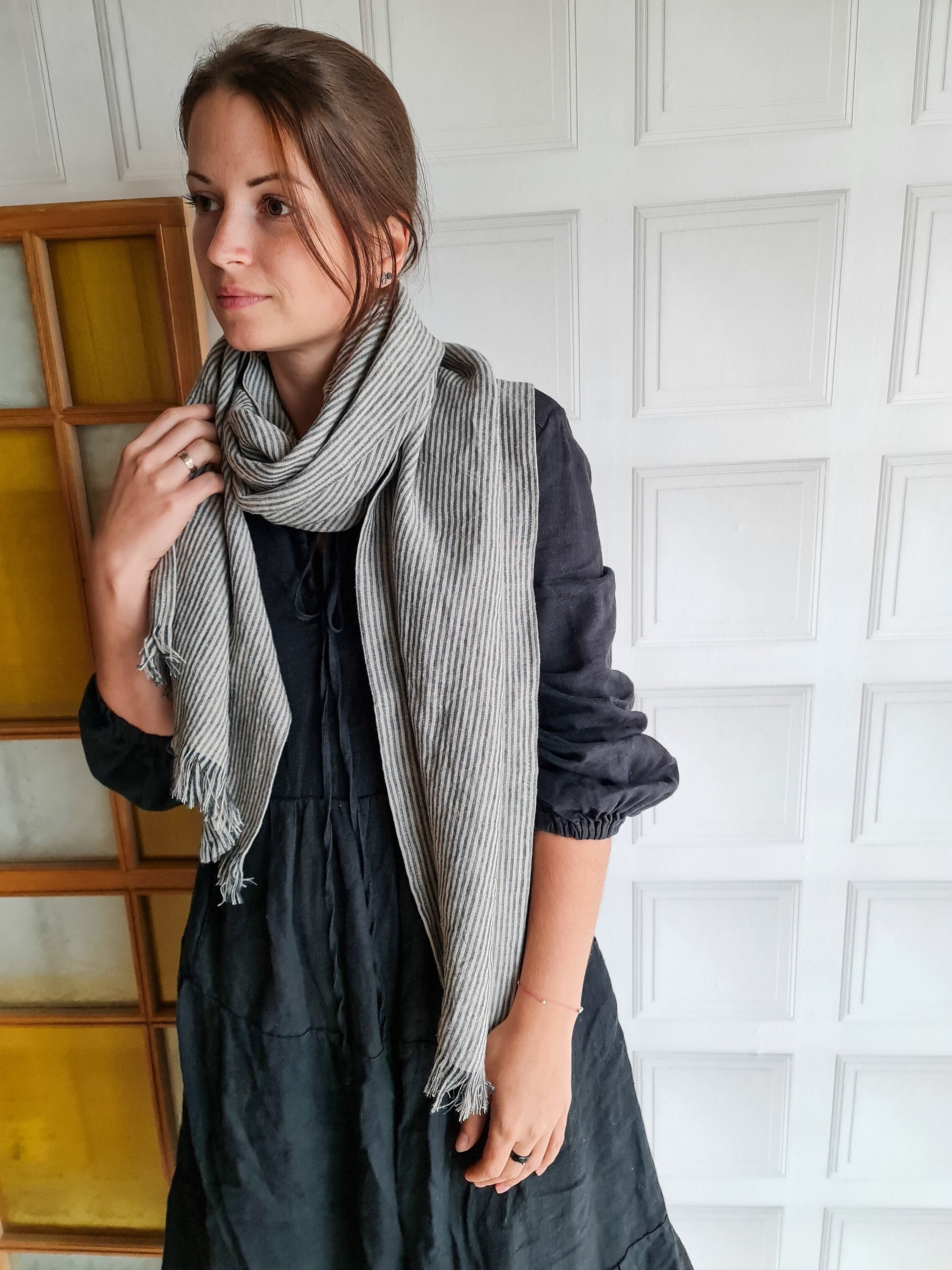 "Striped linen long scarf with fringes. This linen scarf with stripes is softened and pre-washe...