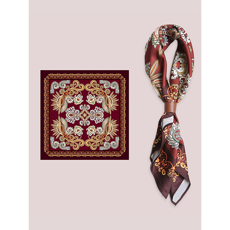 Men's Paisley Print Square Neck Scarf with Leather Buckle, Vintage ...