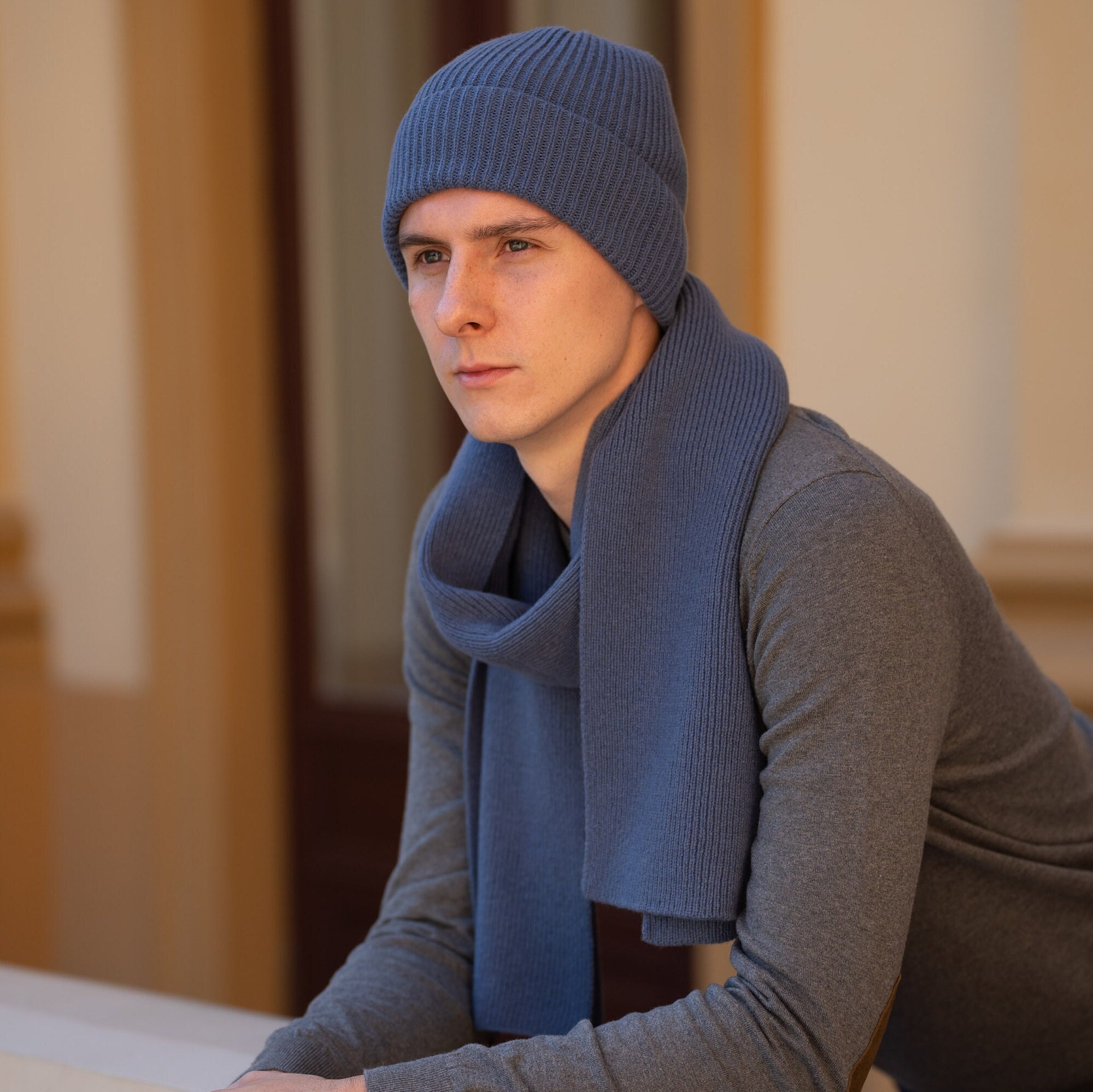 Finest quality and impeccably crafted men's scarf and beanie set is a functional wardrobe essential....