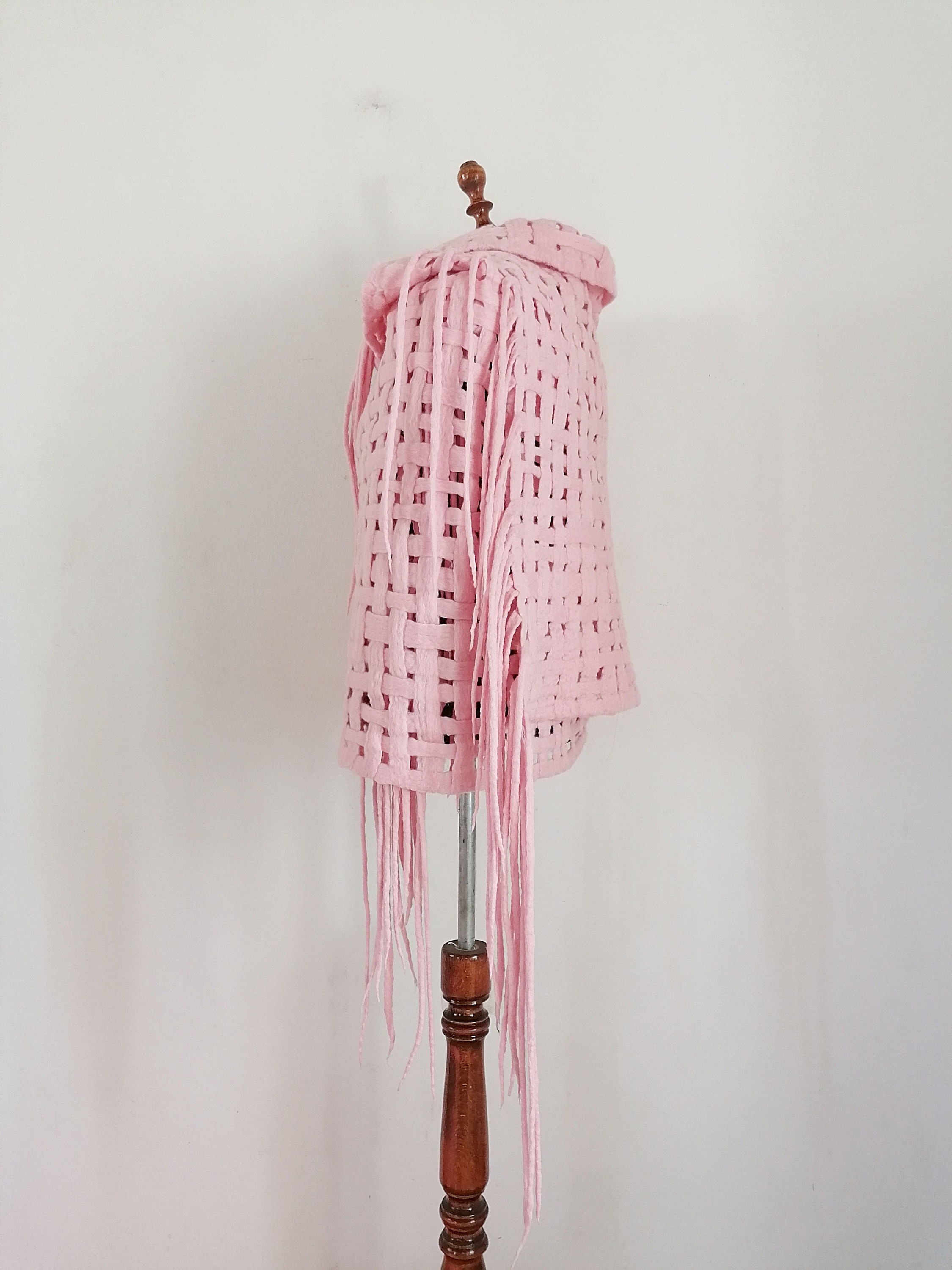 Handmade Merino Wool Felted Shawl ,Wet Felted Wrap with Long Fringe...