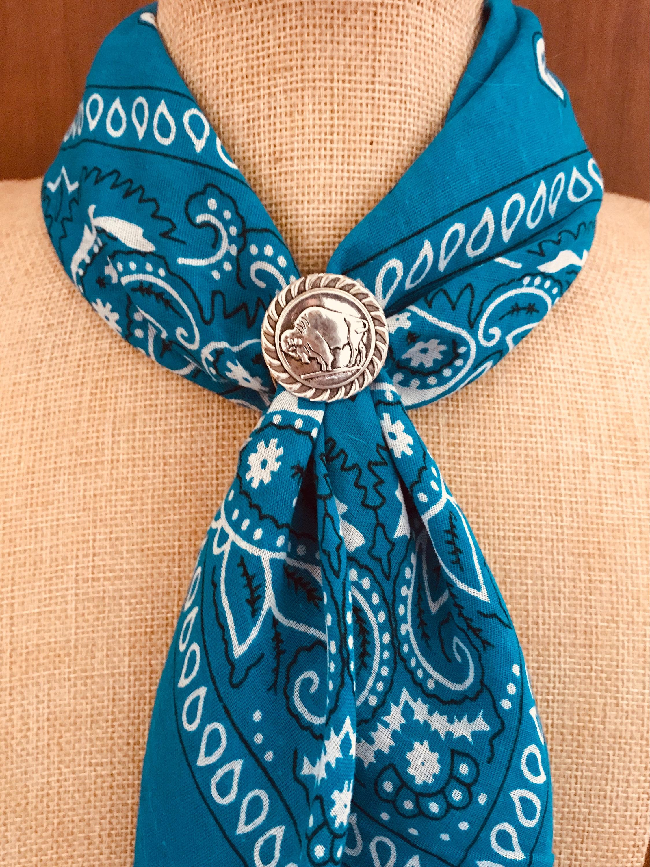 Buffalo Nickel Wild Rag Scarf Slide: Faux Turquoise, Tibetan Silver