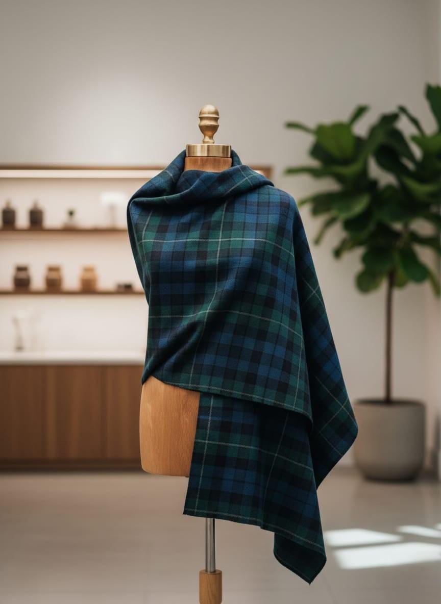 "Embrace classic style with our Black Watch Tartan Shawl. Known as the \"Government Sett,\...