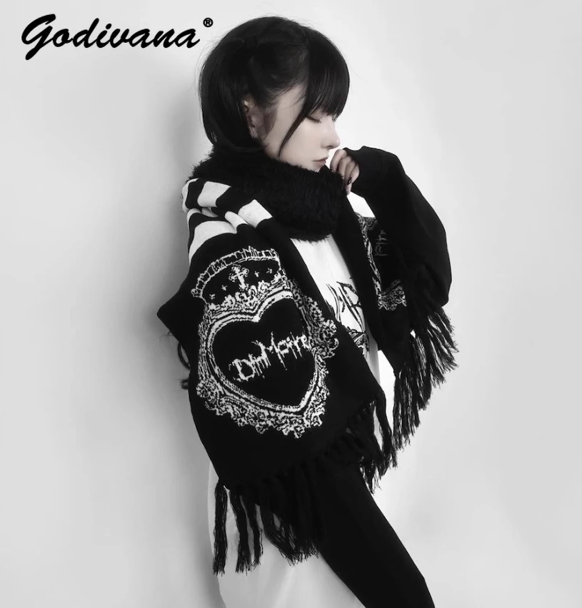 New Autumn and Winter Womens Subculture Gothic Mink Hair Black Scarf Girls Sweet Cool Heart Cross St...