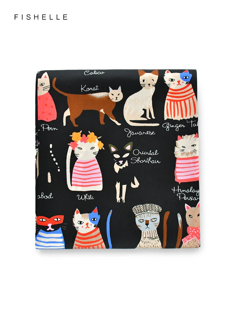 New black cat cartoon printed natural silk scarf female head scarfs...